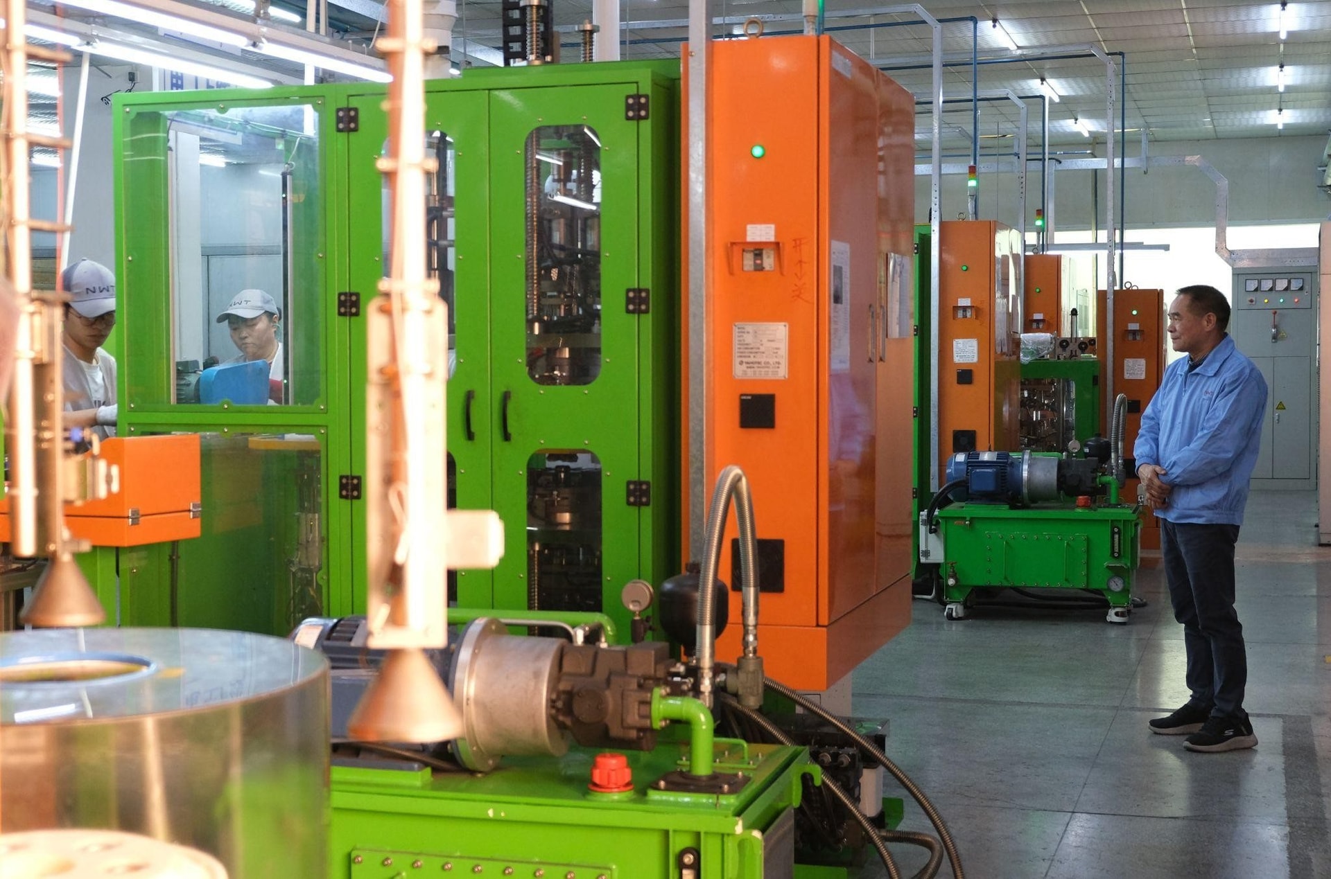 Ông Zang Zhi Ming - Giám đốc bộ phận sản xuất của nhà máy. Ông cho biết quy trình sản xuất là sự kết hợp giữa robot tự động và thao tác thủ công. Từng mối hàn sau khi hoàn thiện đều được kiểm tra bằng cách nhúng vào bể nước để phát hiện rò rỉ khí. Sau đó, máy nén được rửa sạch, sấy khô chống gỉ trước khi chuyển sang công đoạn tiếp theo. Trọng lượng trung bình dao động 6–8 kg, nhưng có những phiên bản cỡ lớn nặng tới 20 kg.