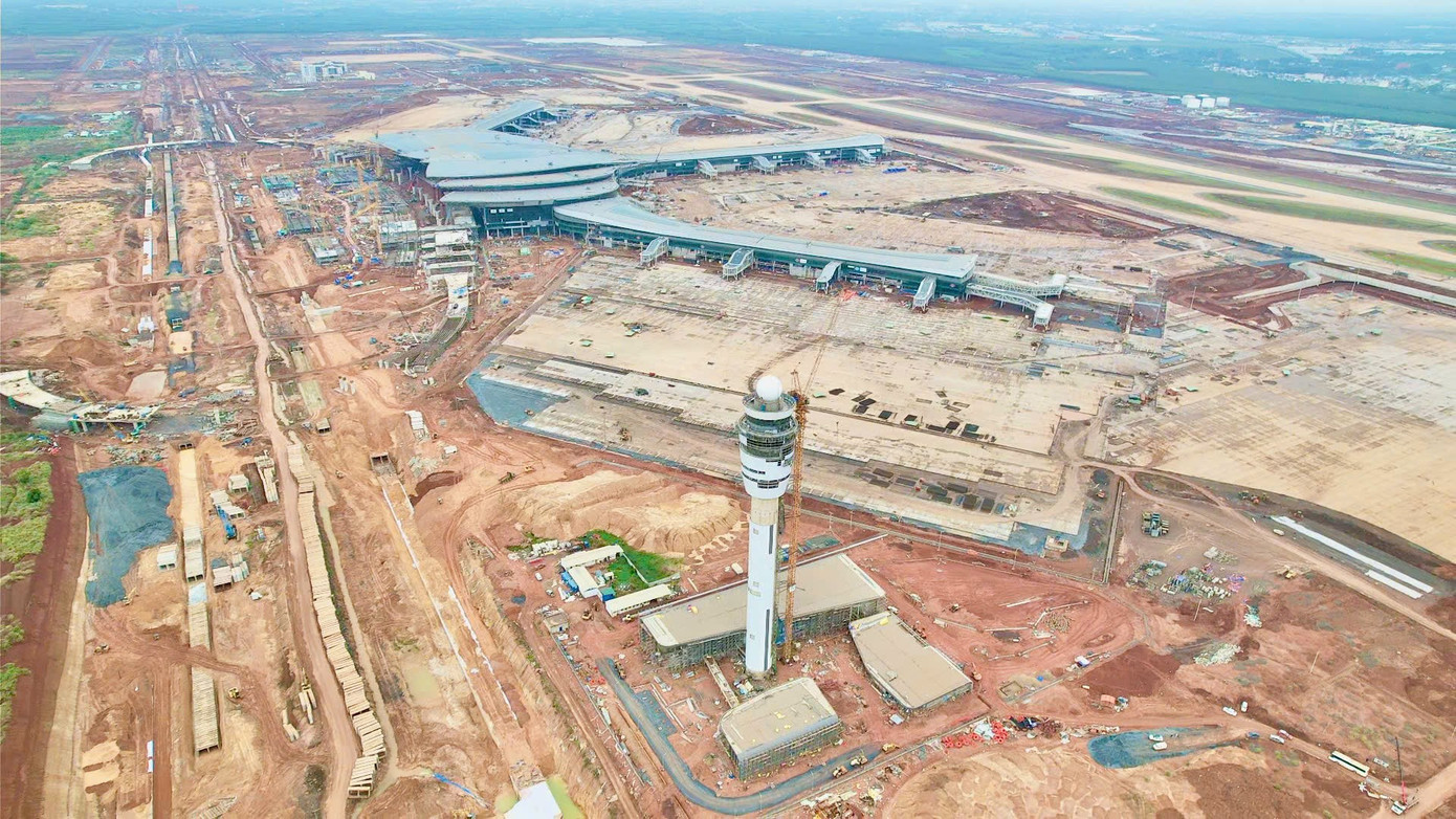 Toàn cảnh tháp không lưu và nhà ga hành khách, đường cất hạ cánh sân bay Long thành.