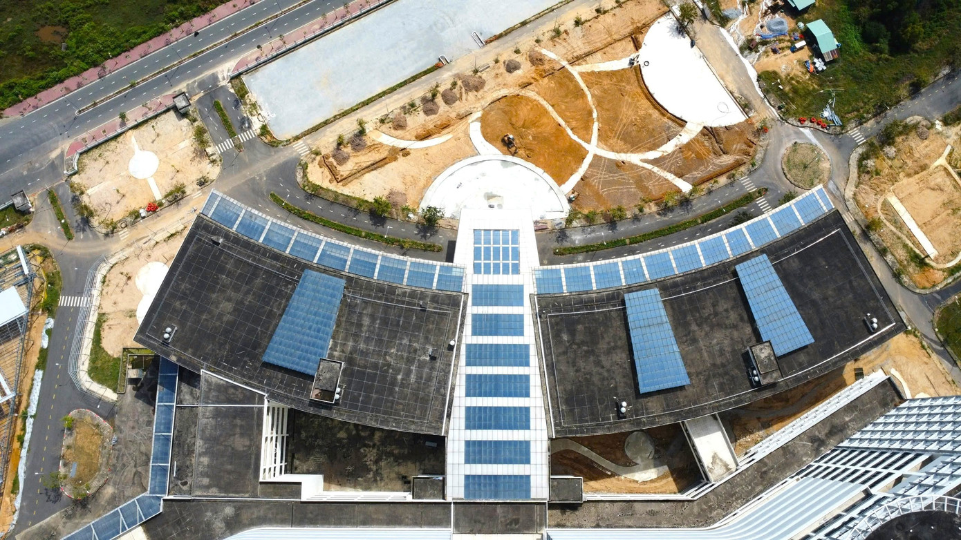 Hiện nay, công trường đang thi công các hạng mục phụ trợ như sân chính, công viên và các phần việc liên quan khác.