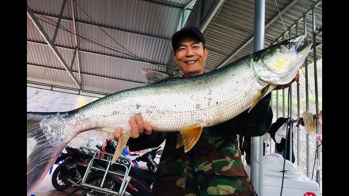 Theo kinh nghiệm của ngư dân, cá măng có thể dài tới gần 2m, nặng hàng chục kilogram. Thân cá dài, đầu lớn, miệng rộng với hàm răng sắc nhọn – những đặc điểm điển hình của loài săn mồi.