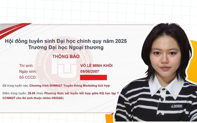 Trong kỳ thi tốt nghiệp THPT 2025, Võ Lê Minh Khôi là một trong những gương mặt gây ấn tượng khi trúng tuyển Đại học Ngoại thương với số điểm 29,89. Vốn là học sinh có nền tảng tốt, Khôi càng bứt phá nhờ bám sát lộ trình học tập tại Marathon, thường xuyên được thầy cô chỉ ra những lỗi sai thường gặp và hướng dẫn cách xử lý đề theo xu hướng mới nhất.