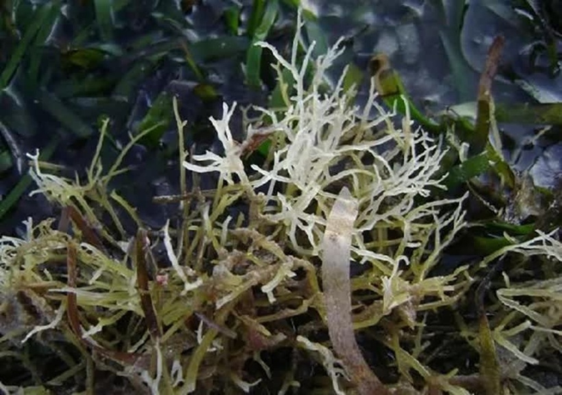 Loài rau mang tên khoa học Porphyra crispata, thường sinh trưởng phong phú tại các tỉnh duyên hải. Rau đá biển sở hữu thân hình mảnh mai tựa sợi chỉ, khoác lên mình sắc nâu tím đặc trưng, mọc thành từng cụm dày đặc, bám chặt vào bề mặt ghồ ghề của đá. Nhìn từ xa, hình dáng của chúng khá tương đồng với chân con vịt, bởi lẽ đó, loài rau này còn được người dân địa phương trìu mến gọi bằng cái tên rau câu chân vịt.