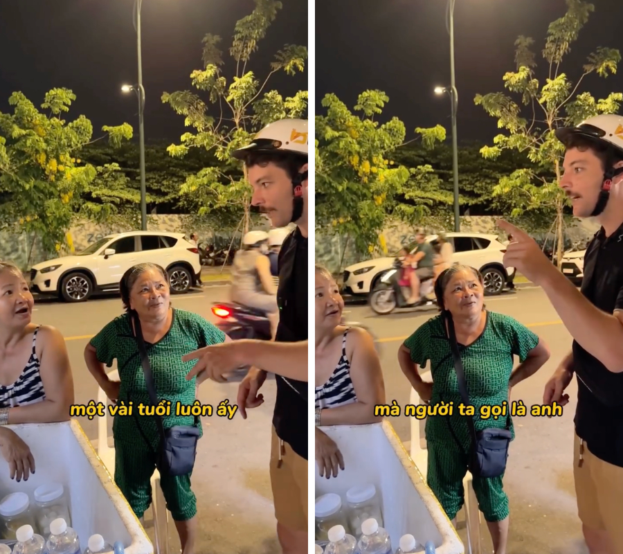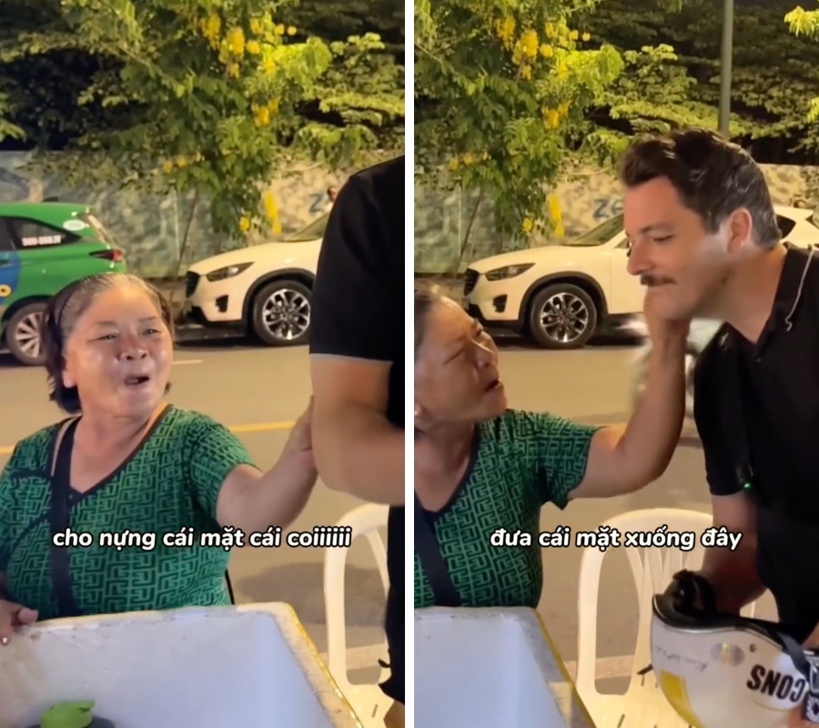 Mới đây, một đoạn video ghi lại cảnh anh chàng ngoại quốc nói tiếng Việt cực sõi khi giao tiếp với các bà, các dì bên vỉa hè đã khiến người xem được một phen cười nghiêng ngả. Trong đoạn video, khi đang đứng cạnh một xe nước vỉa hè, anh chàng ngoại quốc với ngoại hình điển trai đã lọt vào "mắt xanh" của các dì bán hàng. Một người phụ nữ lớn tuổi không ngần ngại bày tỏ sự quý mến bằng cách tiến lại gần và đòi: "Cho nựng cái mặt cái coi!". Trước sự thân thiện có phần táo bạo này, anh chàng không hề tỏ ra khó chịu mà còn vui vẻ cúi xuống để dì nựng má, kèm theo lời trêu đùa: "Nhìn cái mặt thấy ghét quá à!".