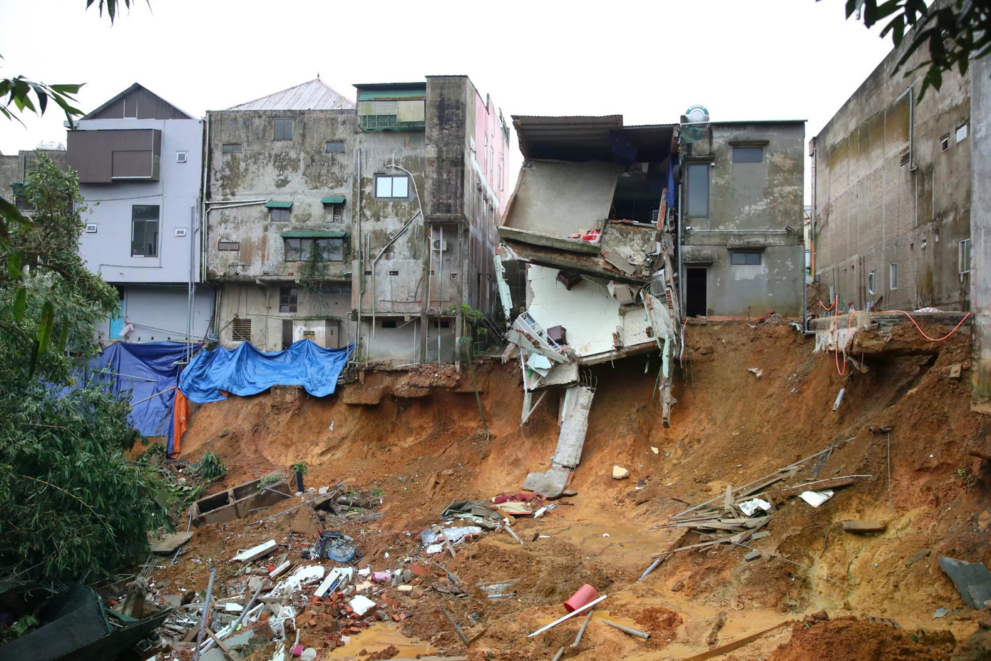 Dải sạt lở dài khoảng 170 m, sâu 15 m, rộng 30 m, diện tích hơn 5.000 m². Hai ngôi nhà bị phá hỏng phần sau, còn 10 nhà liền kề đứng trước nguy cơ nứt, gãy và mất an toàn.