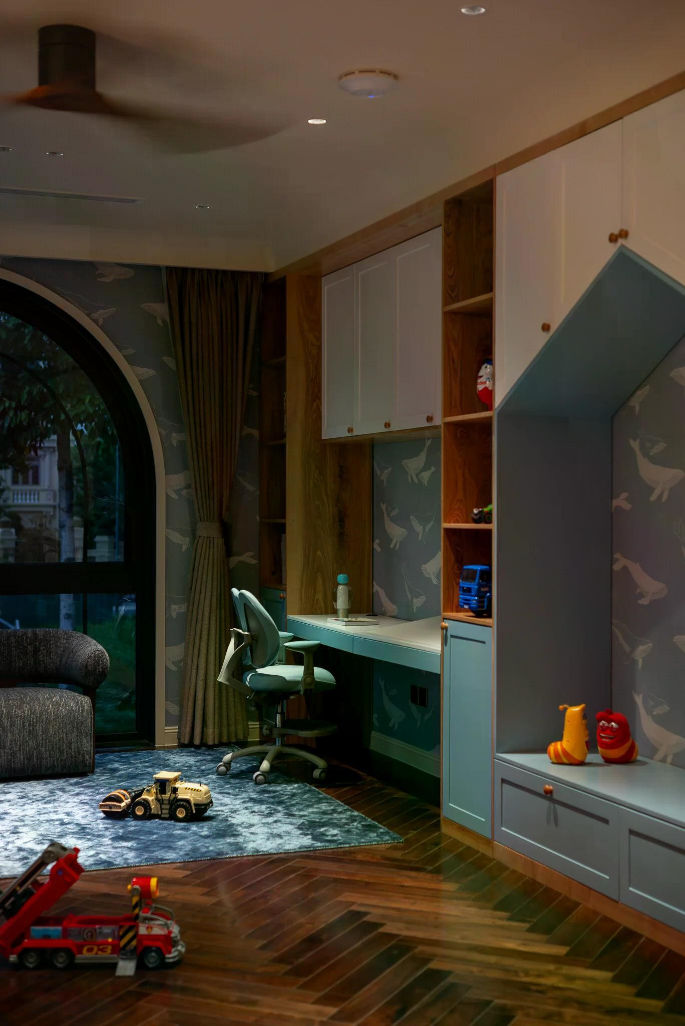 Căn biệt thự được xây dựng theo phong cách tân cổ điển tối giản, không gian được thiết kế sang trọng nhưng vẫn có những “khoảng thở” để gia chủ hoà mình với thiên nhiên và những trải nghiệm sống đúng nghĩa của một gia đình trẻ.