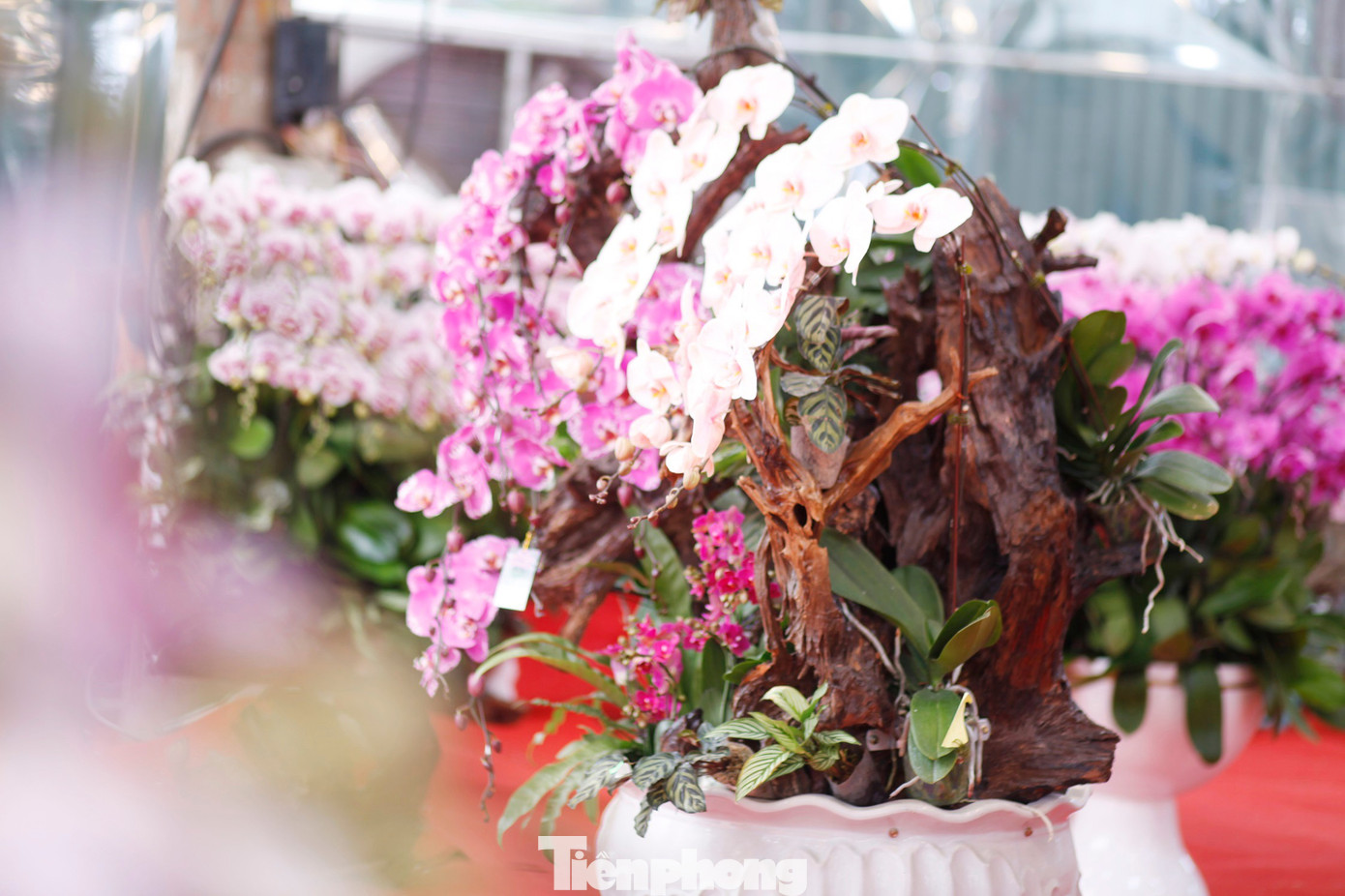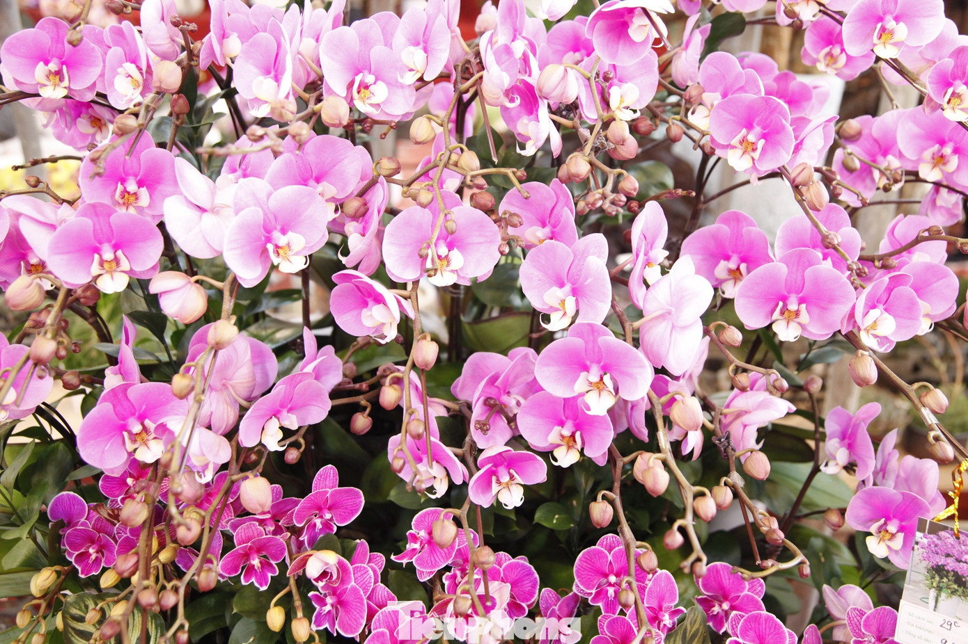 Những chậu hoa lan bán Tết được chăm sóc cẩn thận.