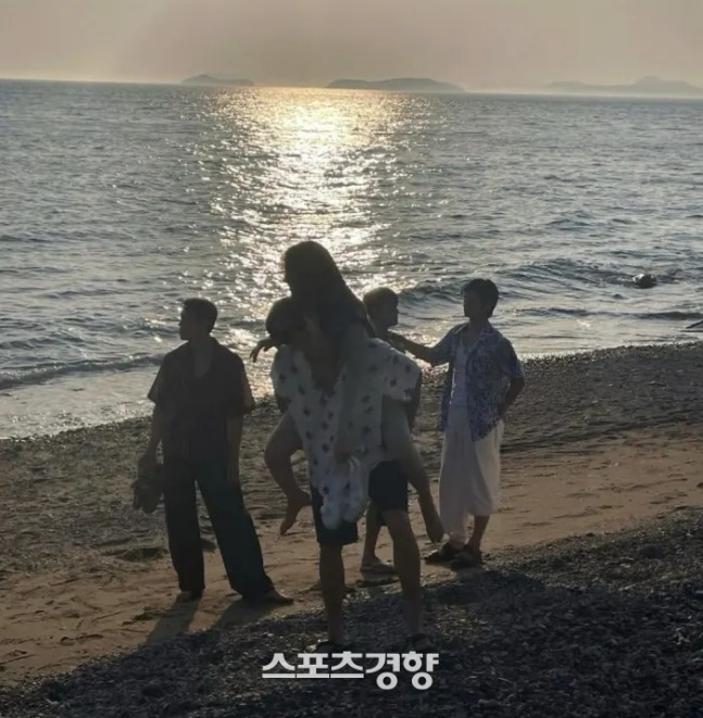 Bố mẹ Á hậu rất thích cảnh Lim Soobin cõng con gái mình ở bãi biển. Ảnh: Sports Kyunghang