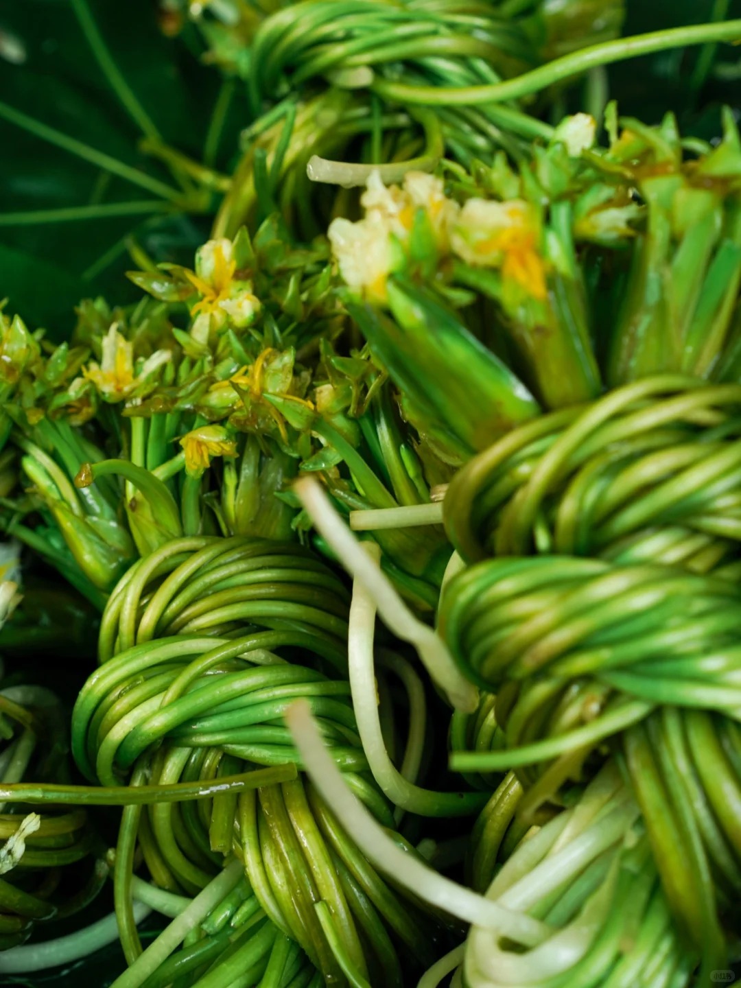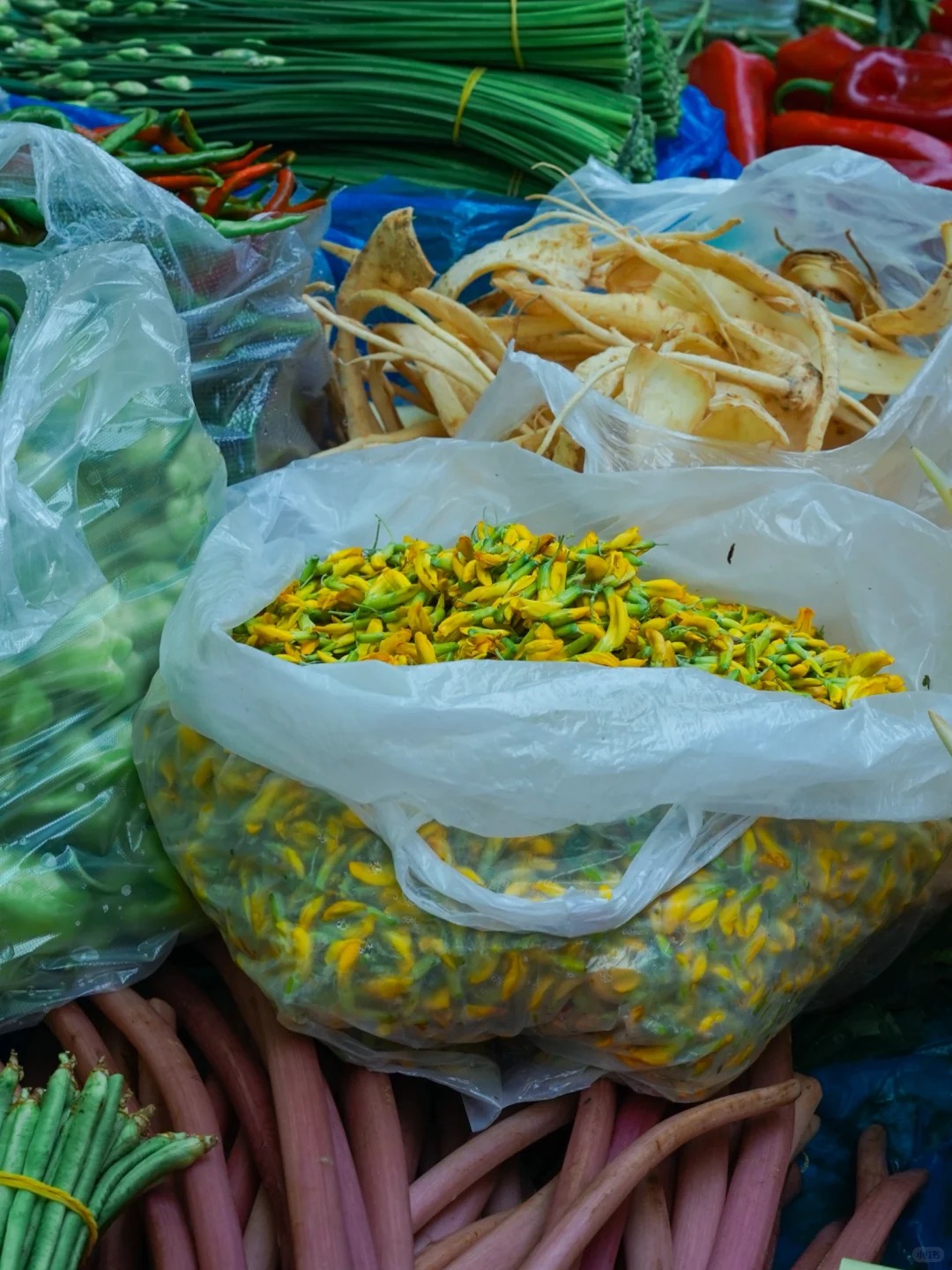 Vào một buổi sáng thanh sương ở Lệ Giang, khi sương giá còn chưa tan hết, chợ đã họp. Tầm tám giờ sáng, Bếp trưởng Ngô xách gùi len qua dòng người, chen cạnh những người dì, người mẹ (A nương) từ trên bản xuống. Trong gùi của họ là thứ mùa xuân tươi non nhất. Nụ hương thung tím sẫm rịn sương đêm được bó thành từng nắp, mùi hăng nồng đặc trưng bay xa hàng mét. Hoa kim tước vàng ươm hớn hở. Những ngọn dương xỉ cuộn tròn đầy lông tơ như chưa sẵn sàng ngắm nhìn thế giới. Hoa đường lê, hoa khổ thử, hoa mộc miên... hàng dài nối nhau trải khắp con hẻm nhỏ, đợi người biết thưởng thức đón về.