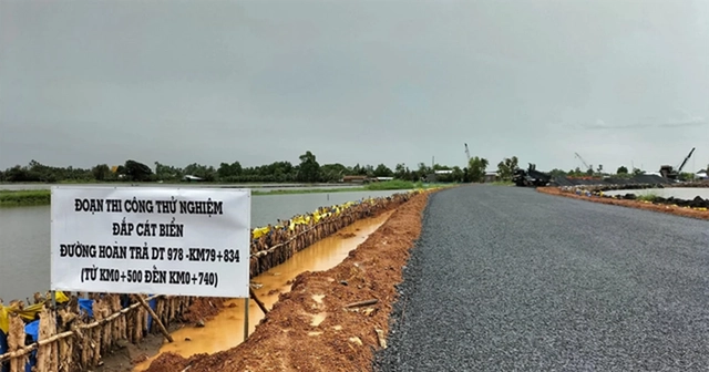 Đoạn tuyến thi công thử nghiệm lấy cát biển làm vật liệu đắp nền. Ảnh: VGP.