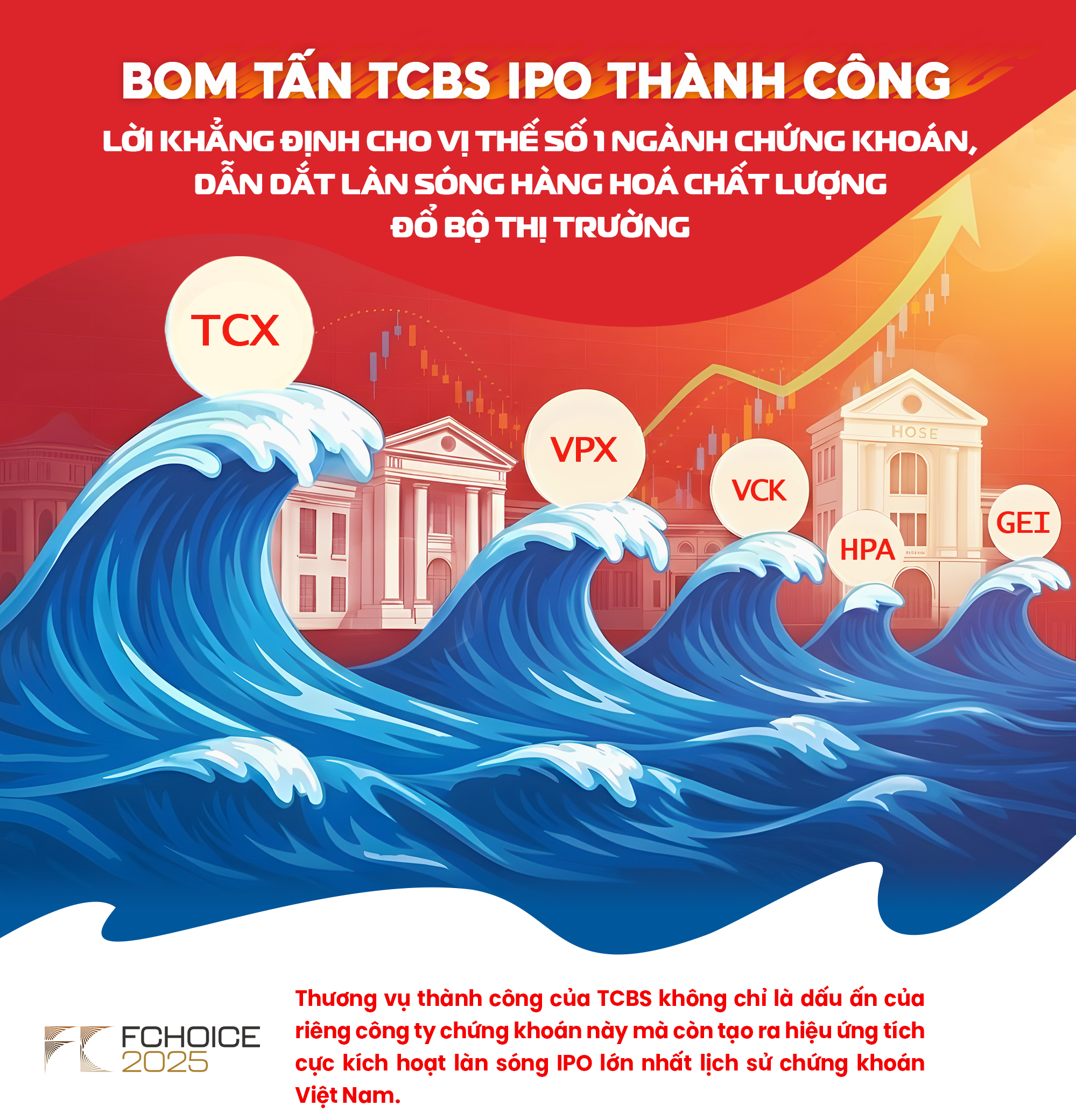 Thương vụ IPO thành công của TCBS tạo ra hiệu ứng tích cực, góp phần thúc đẩy tốc độ triển khai của các "bom tấn" tiếp theo. Loạt công ty lớn trong ngành chứng khoán, hạ tầng, nông nghiệp "ồ ạt" IPO những tháng cuối năm là bước khởi đầu hoàn hảo cho một làn sóng IPO sắp tới. Nguồn hàng hoá mới, chất lượng góp phần đa dạng cơ cấu thị trường, thúc đẩy chứng khoán Việt Nam tăng trưởng bền vững.