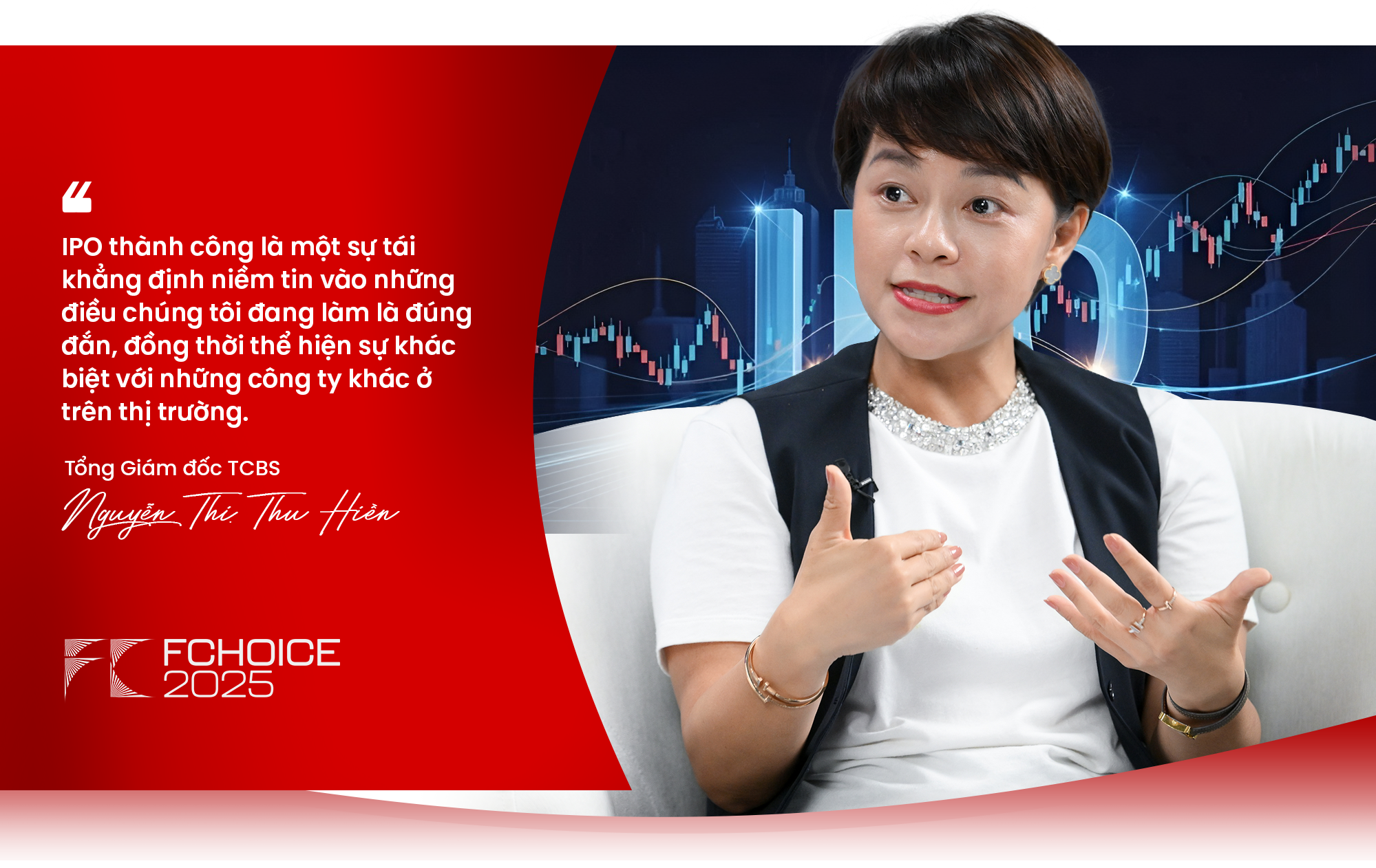 Ở góc độ sâu hơn từ phía công ty đại chúng, IPO mang lại nhiều giá trị hơn là số vốn huy động được đơn thuần. Hơn hết đó là niềm tin, từ đội ngũ đến khách hàng. "Đây là một sự tái khẳng định niềm tin của đội ngũ công ty vào những điều chúng tôi đang làm là đúng đắn và sẵn sàng bước tiếp, đồng thời thể hiện sự khác biệt với những công ty khác ở trên thị trường", bà Nguyễn Thị Thu Hiền, Tổng Giám đốc TCBS chia sẻ.