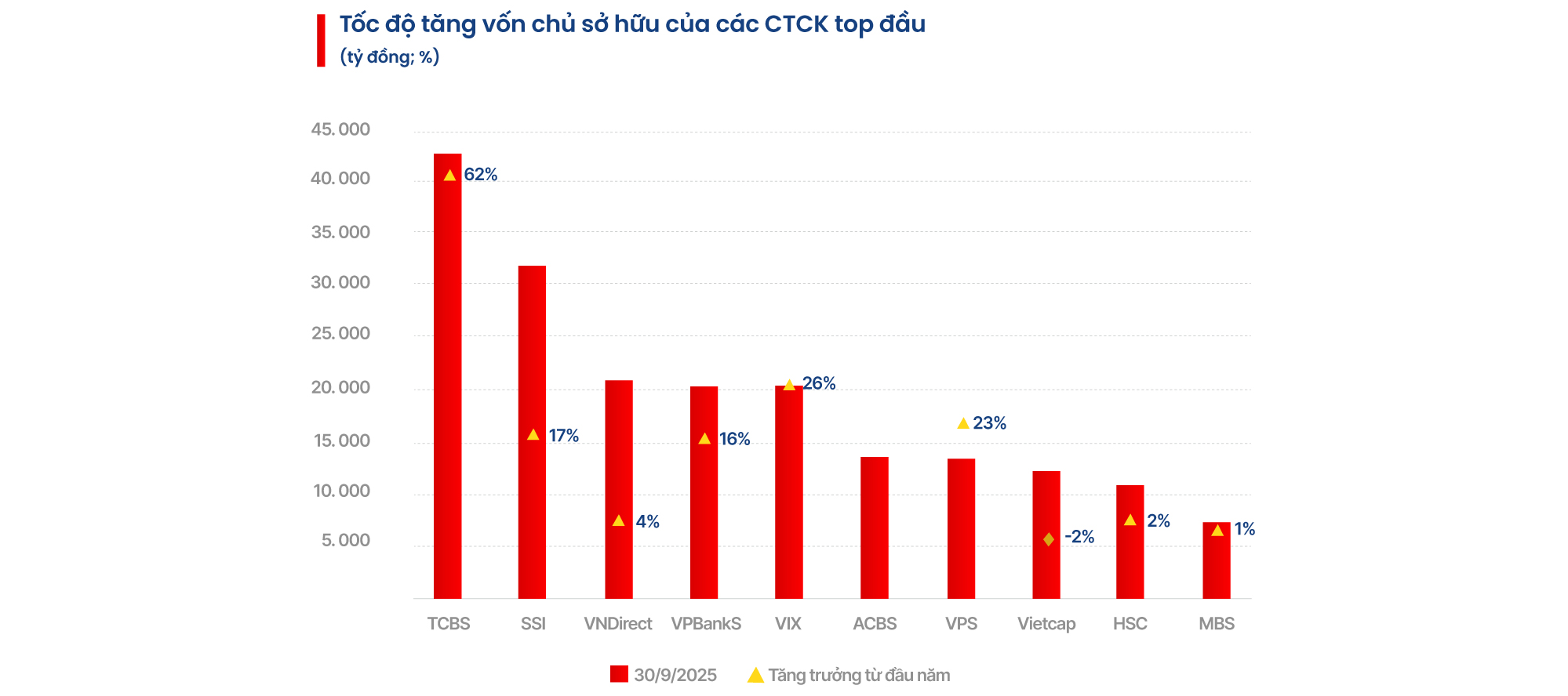 Vị thế dẫn đầu của TCBS có được nhờ chiến lược khác biệt, năng lực công nghệ vượt trội và tư duy tập trung tuyệt đối vào trải nghiệm khách hàng. Tiên phong áp dụng Zero fee, không chạy theo mô hình môi giới truyền thống, TCBS chọn hướng đi chuyên sâu vào mảng ngân hàng đầu tư và quản lý tài sản, trở thành đơn vị tiên phong số hóa toàn diện các sản phẩm tài chính. Thị phần giao dịch của công ty chứng khoán này trên HoSE đã vươn lên mạnh mẽ, vượt qua nhiều tên tuổi lâu năm để xếp thứ 3 toàn ngành.