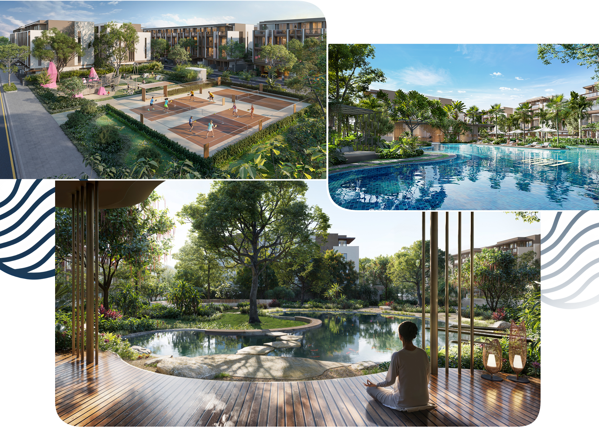 Những công viên nội khu là minh chứng rõ nét. Mỗi công viên đều mang một sắc thái nhẹ nhàng: có nơi dành cho sự tĩnh lặng của thiền và yoga, có nơi mở ra những chuyển động êm dịu của hồ bơi lớn mang hơi thở resort, và có nơi chỉ đơn giản là những bãi cỏ mướt mắt để người ta nằm xuống và nghe tiếng gió. Không có sự gồng mình tạo điểm nhấn, tất cả đều được sắp đặt như thể tồn tại ở đó từ rất lâu, chờ người ta đến và cảm nhận.