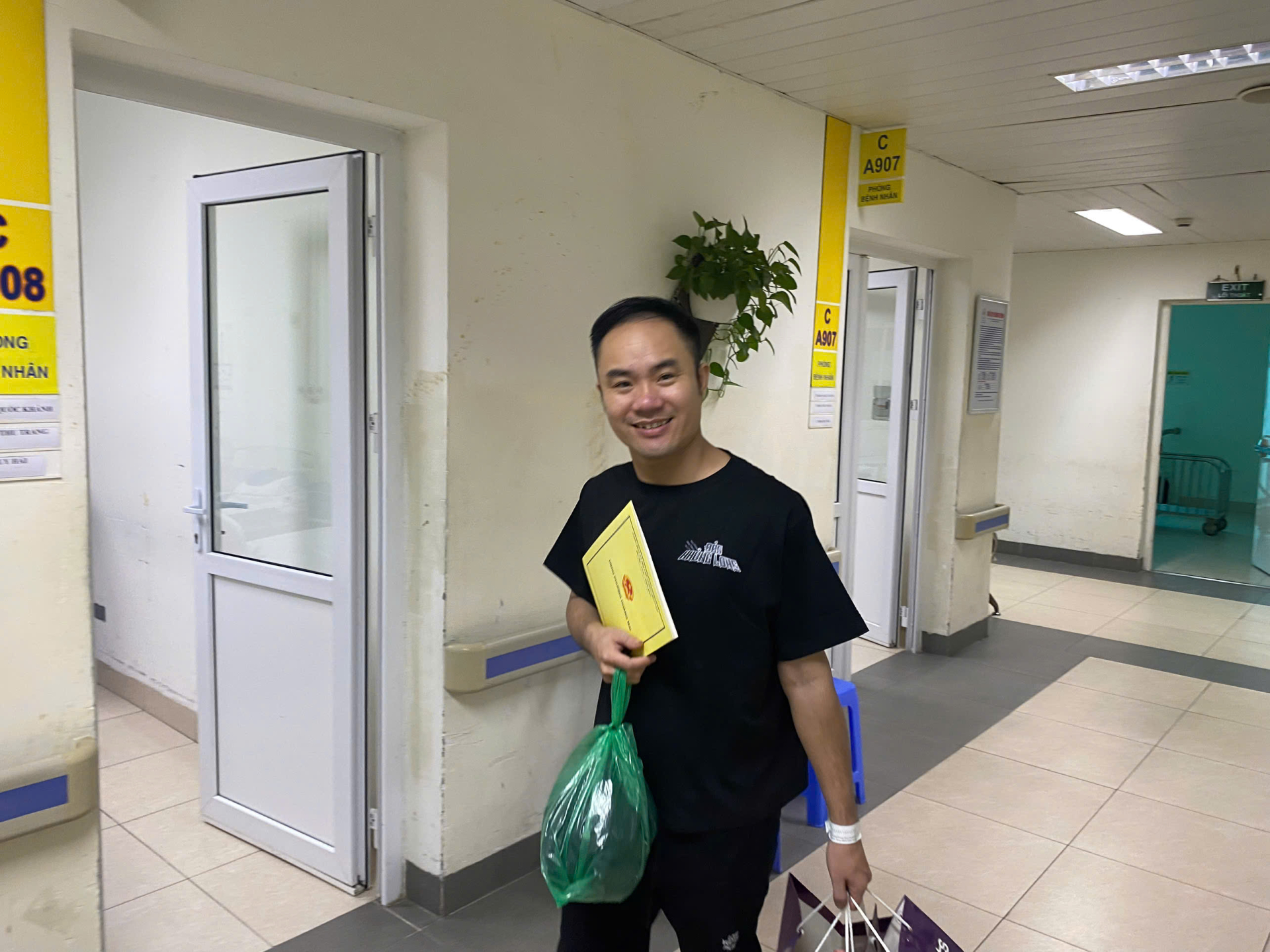Nguyễn Lê Tú, sinh viên Đại học Bách khoa Hà Nội, cũng xuất viện cùng gia đình nạn nhân trong ngày. (Ảnh: BVCC)