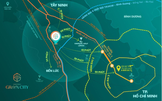 Tọa lạc tại tâm điểm ta giác kinh tế TP.HCM – Tây Ninh – Tây Nam Bộ, Vinhomes Green City hưởng lợi trực tiếp từ loạt dự án hạ tầng chiến lược phía Tây Bắc. Khi ba tuyến trục vận hành, nơi đây hứa hẹn trở thành trung tâm giao thương, dân cư, dịch vụ mới tại "trái tim" CBD Tây Bắc, định vị vị thế "cực tăng trưởng" của khu vực.
