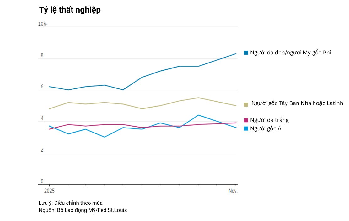 Tỷ lệ thất nghiệp của người Mỹ gốc Phi đã tăng hơn 2 điểm phần trăm kể từ đầu năm. Mức tăng này nhanh hơn đáng kể so với các nhóm khác. Điều này đe dọa làm xói mòn những thành quả việc làm mà người lao động da màu đạt được trong và sau đại dịch.