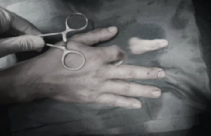 Hình ảnh ngón tay trỏ đứt rời của anh D trước phẫu thuật vi phẫu nối ngón tay