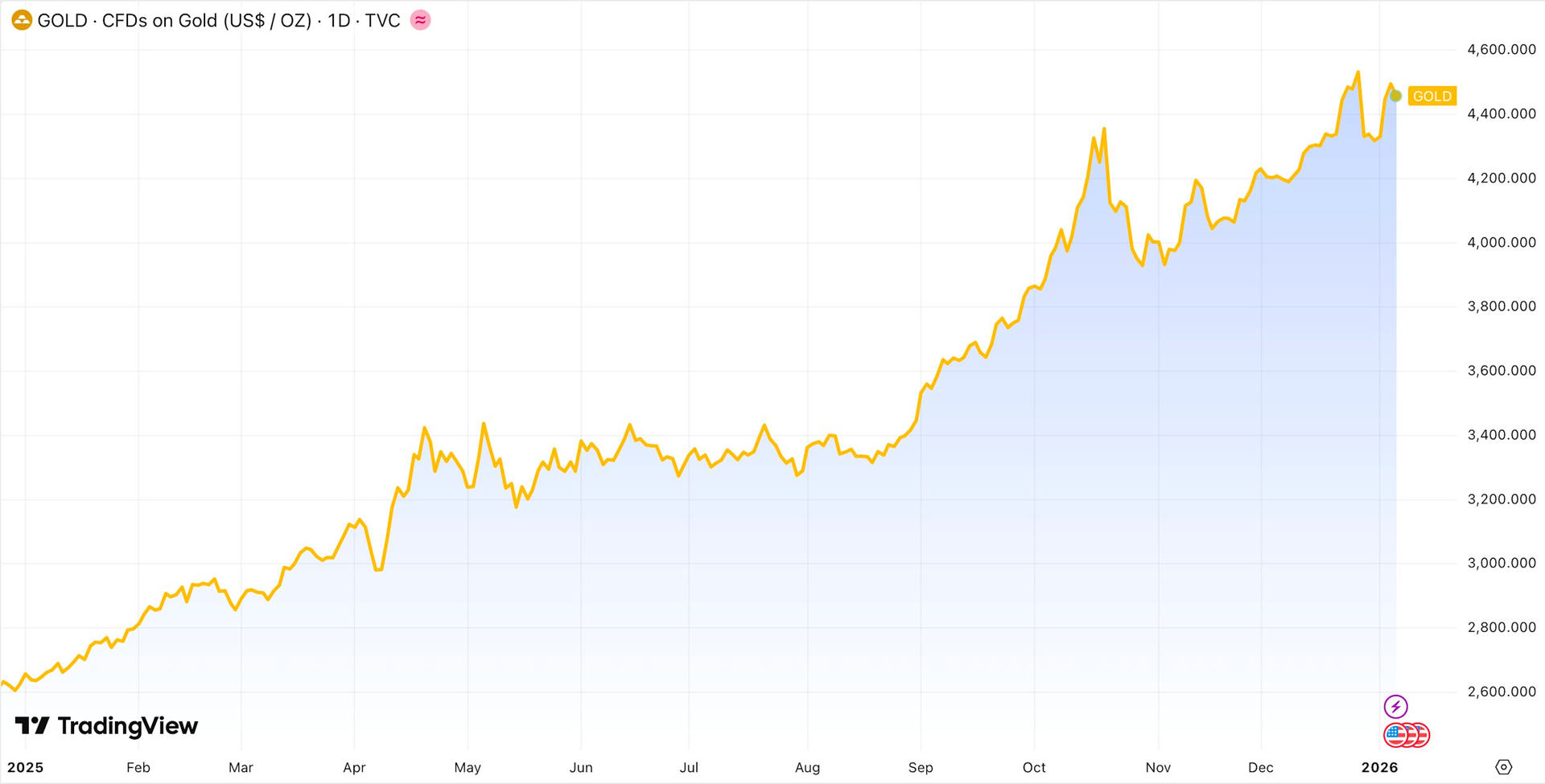 Widmer nói thêm rằng sự tăng giá mạnh của vàng trong năm 2025 có nghĩa là một số nhà quản lý danh mục đầu tư sẽ khó có thể bỏ qua nó trong năm mới. “Chỉ cần nhìn vào các chỉ số chuẩn, vàng là một trong những tài sản hoạt động tốt nhất trong vài năm qua,” ông nói.