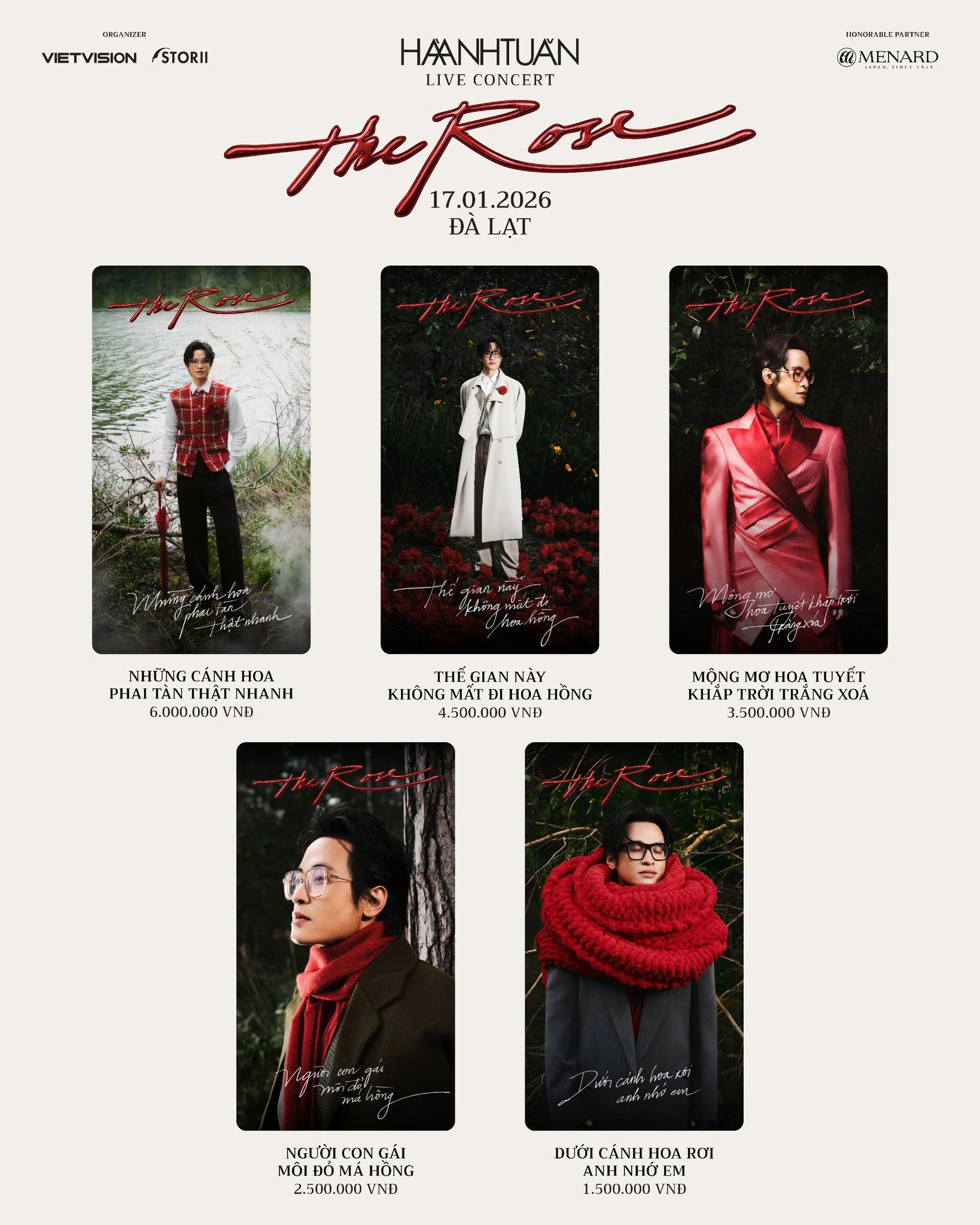 Vào ngày 5/12 vừa qua, nam ca sĩ Hà Anh Tuấn chính thức công bố giá vé cho live concert “The rose” sẽ diễn ra tại Đà Lạt vào ngày 17/1/2026.
