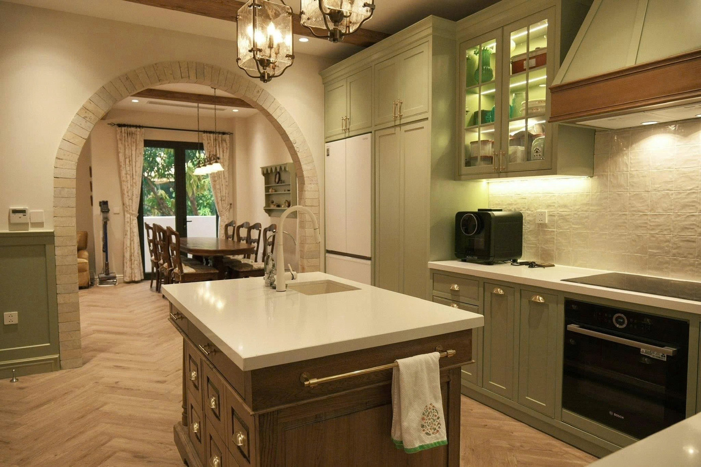 Không rộng lớn hay cầu kỳ, căn bếp xanh bơ này mang lại cảm giác đủ đầy bằng chính sự chăm chút và yêu thương được gửi gắm trong từng chi tiết. Mỗi lần bước qua cánh cửa vòm, chạm vào sắc xanh dịu mát và mùi gỗ ấm áp, gia chủ lại cảm nhận rõ ràng rằng: đây không chỉ là nơi nấu ăn, mà là trái tim của ngôi nhà – nơi những điều bình dị nhất trở thành hạnh phúc bền lâu.
