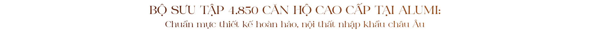 Bộ sưu tập căn hộ cao cấp tại Alumi được kiến tạo không chỉ cho khoảnh khắc bàn giao, mà cho giá trị sử dụng bền vững suốt nhiều thập kỷ. Mỗi căn hộ được hoàn thiện đồng bộ với hệ nội thất và thiết bị đến từ các thương hiệu châu Âu danh tiếng như Bosch, Häfele, Kohler, Grohe, Duravit…(hoặc tương đương) - những tên tuổi đã được kiểm chứng trong các công trình cao cấp toàn cầu. Không gian nội thất được thiết kế linh hoạt với những phong cách vượt thời gian như Modern thời thượng hay Neo Classic sang trọng…, bảo đảm công năng tối ưu và hạn chế nhu cầu cải tạo thay thế về sau.