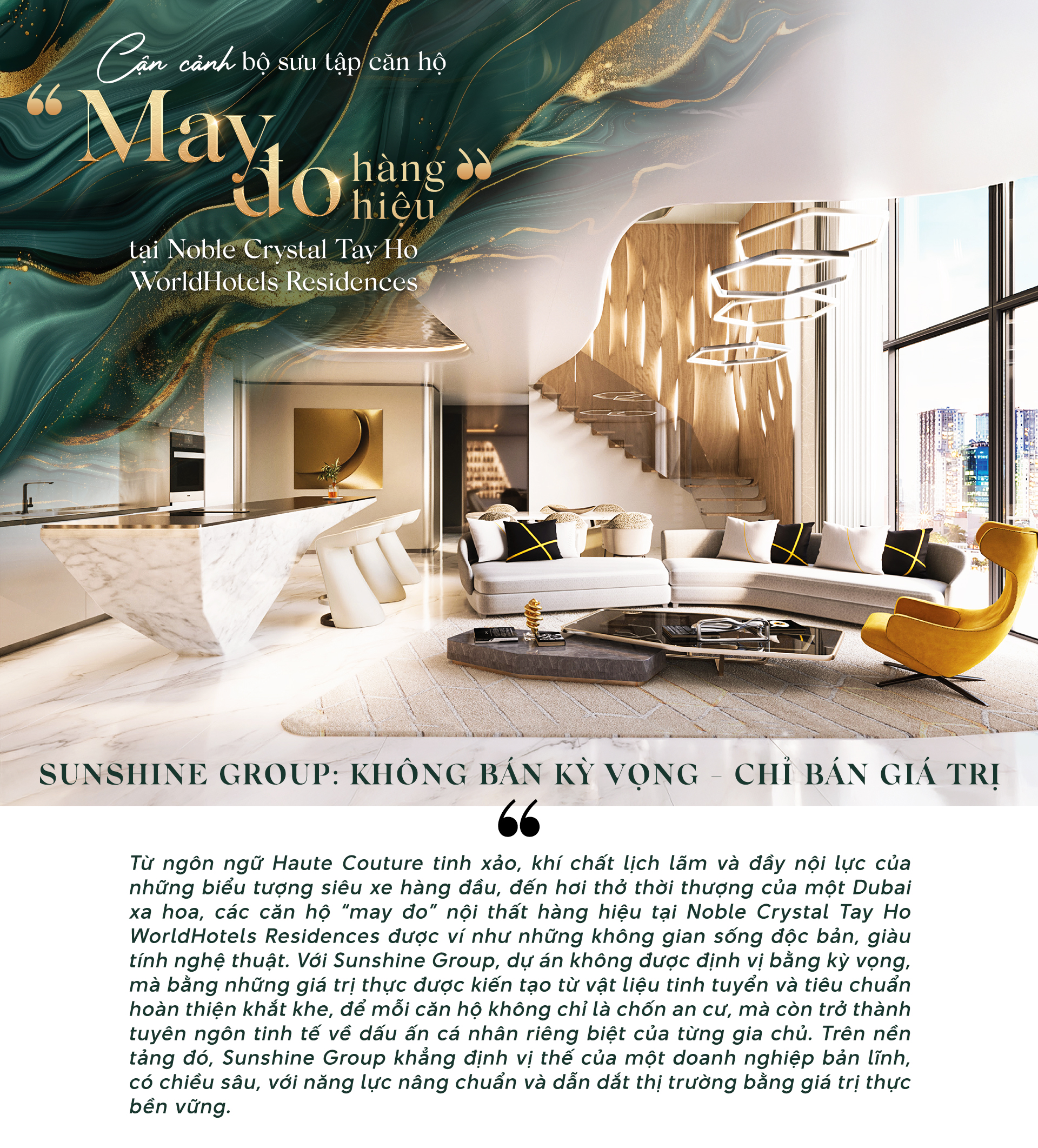 Là dự án căn hộ hàng hiệu tiên phong tại Ciputra, Noble Crystal Tay Ho WorldHotels Residences của Sunshine Group đang dần hiện hữu như một tuyệt tác giữa khu đô thị danh giá bậc nhất Thủ đô. Công trình tọa lạc trên quỹ đất bốn mặt tiền hiếm có, sở hữu tầm nhìn khoáng đạt ôm trọn sông Hồng và hồ Tây. Trên nền vị trí độc bản ấy, dự án được phát triển với tỷ lệ gần 90% quỹ căn là các căn hộ thông tầng “may đo” hàng hiệu, được ví như bộ sưu tập của những Sky Mansion – dinh thự giữa tầng không.