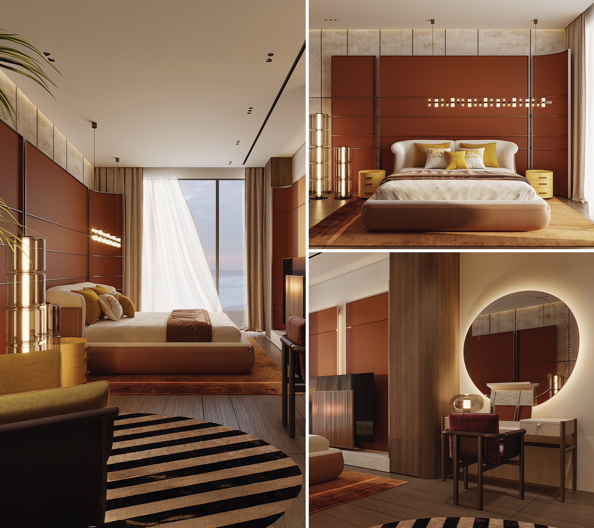Bảng màu trầm ấm với nâu cognac, be champagne và ánh kim được xử lý tinh tế, kết hợp đá marble tuyển chọn, kim loại và gỗ cao cấp, gợi nhắc tinh thần bespoke của những dinh thự Trung Đông đương đại. Ánh sáng được bố trí như một lớp trang sức kiến trúc, làm nổi bật hình khối và chiều sâu không gian. Tổng thể không nhằm tạo sự êm ái, mà khẳng định một chuẩn mực sống thượng hạng – nơi mỗi chi tiết đều được thiết kế riêng cho những gia chủ hiểu rõ mình là ai và muốn những trải nghiệm đỉnh cao nào.
