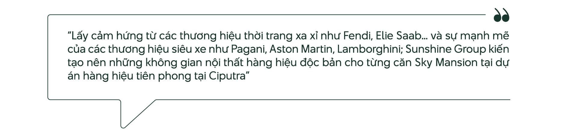 Hơn cả một nơi để sống, các Sky Mansion sẽ là không gian bespoke được cá nhân hóa tới từng chi tiết. Gia chủ có thể tự do lựa chọn các tiện nghi và nội thất đến từ những thương hiệu xa xỉ hàng đầu thế giới để kiến tạo nên những không gian sống vượt chuẩn thông thường. Đội ngũ chuyên gia kiến trúc và thiết kế sẽ trực tiếp đồng hành trong quá trình tinh chế từng chi tiết – từ bố cục không gian, vật liệu, ánh sáng đến phong cách tổng thể – nhằm đáp ứng trọn vẹn gu thẩm mỹ và cá tính riêng của từng gia chủ.