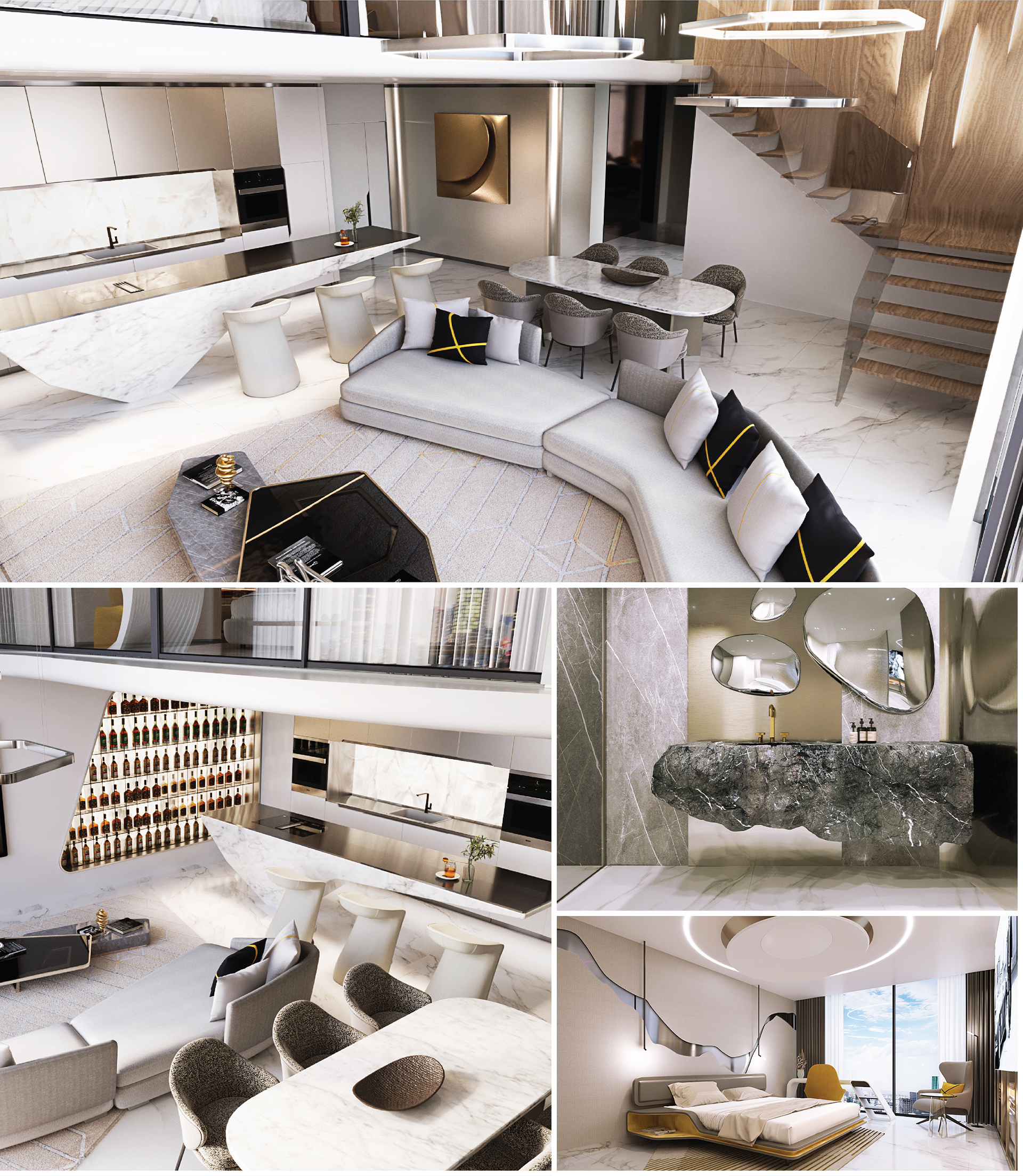 Trên nền tảng kiến trúc đó, ngôn ngữ nội thất và thiết kế được mở rộng đa tầng cảm hứng: từ tinh thần Haute Couture của thời trang cao cấp, sự mạnh mẽ giàu cảm xúc của thế giới siêu xe, hay dấu ấn xa hoa đặc trưng của Dubai – nơi nghệ thuật sống không dừng ở tiện nghi, mà trở thành biểu tượng cá nhân và tuyên ngôn phong cách của giới tinh hoa.
