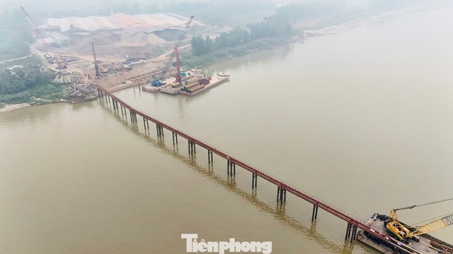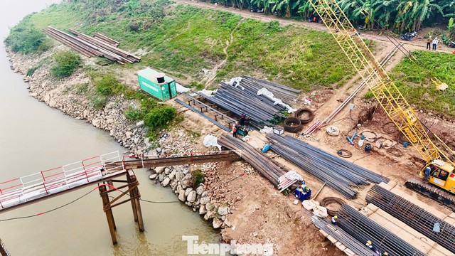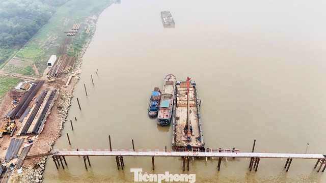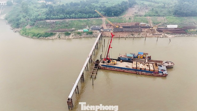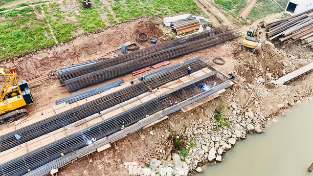 Cận cảnh công trường cầu Vân Phúc hơn 3.400 tỷ đồng vượt sông Hồng