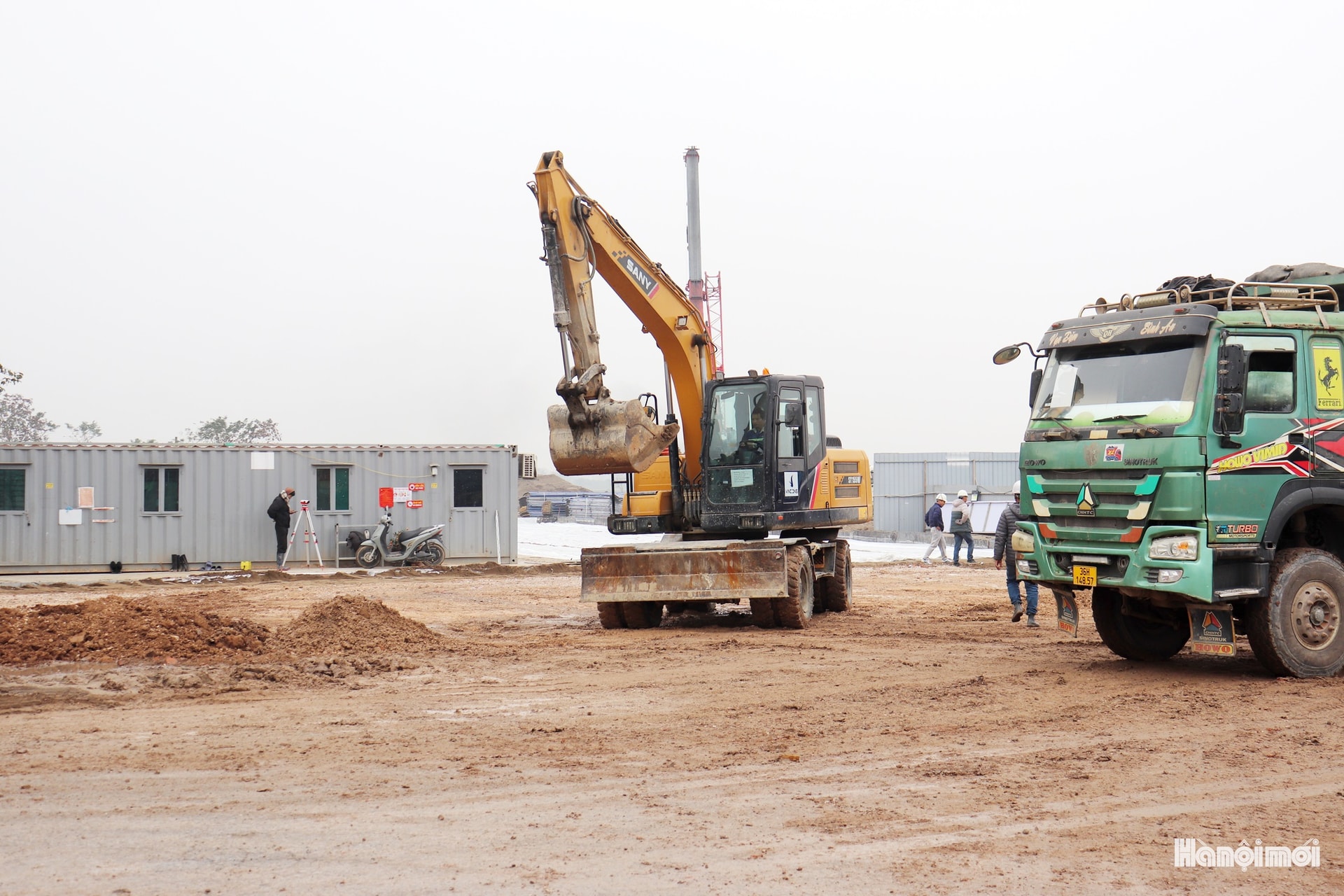 Các loại máy móc, thiết bị cơ giới hoạt động liên tục, đẩy nhanh tiến độ thi công các hạng mục ban đầu. Ảnh: Tuấn Điệp
