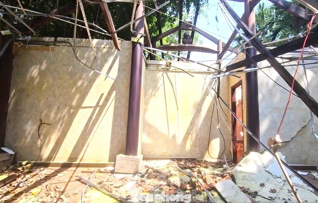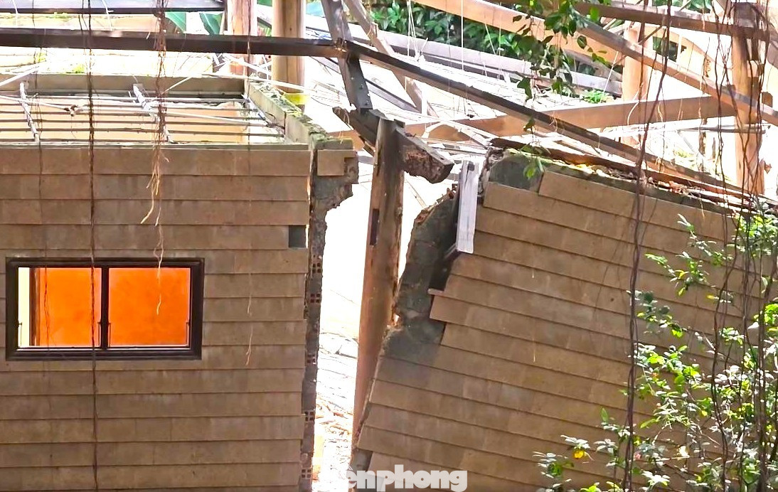 Theo ghi nhận, dãy hàng chục căn villa tại Resort Phương Nam đang được giăng dây cảnh báo, phong tỏa. Tại nhiều phòng, tường, gạch sàn bị nứt toác. Từ căn 46 đến 53, tường nhà bị đổ sập, la phông rớt.