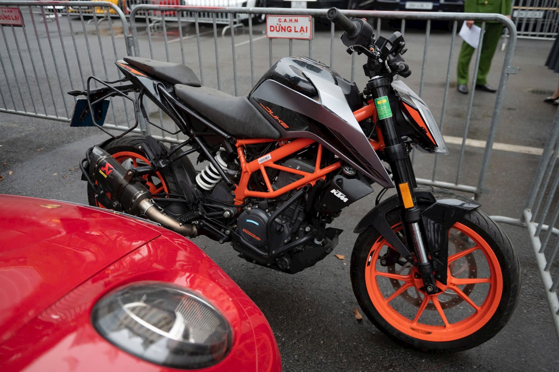 Cảnh sát còn tạm giữ 7 môtô gồm Honda CB1100, Honda CB1300, KTM Duke 390, Honda Dax 125, Harley-Davidson Low Rider El Diablo giới hạn 1.500 chiếc, MV Agusta Rush 1000 giới hạn 300 chiếc để xác minh làm rõ nguồn gốc và phục vụ điều tra.