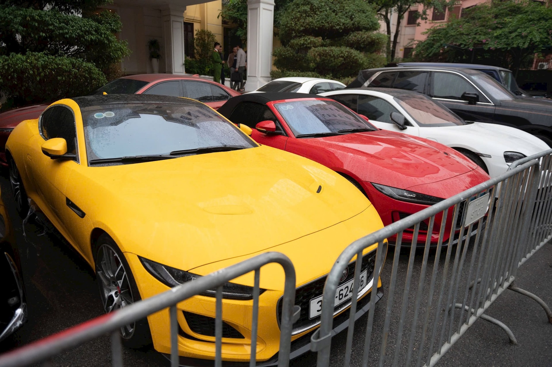 Trong số tài sản bị thu giữ, có 41 ô tô và 7 mô tô phân khối lớn. Dàn xe này quy tụ nhiều thương hiệu hạng sang và siêu xe, như 8 chiếc Mercedes-Benz, 5 Porsche, 4 Jaguar, BMW, Mazda, Lexus và VinFast mỗi hãng 2 chiếc.