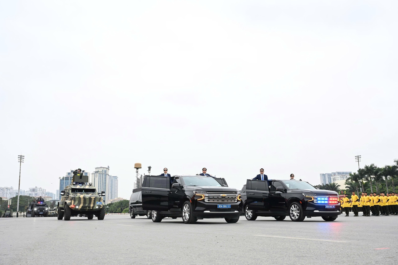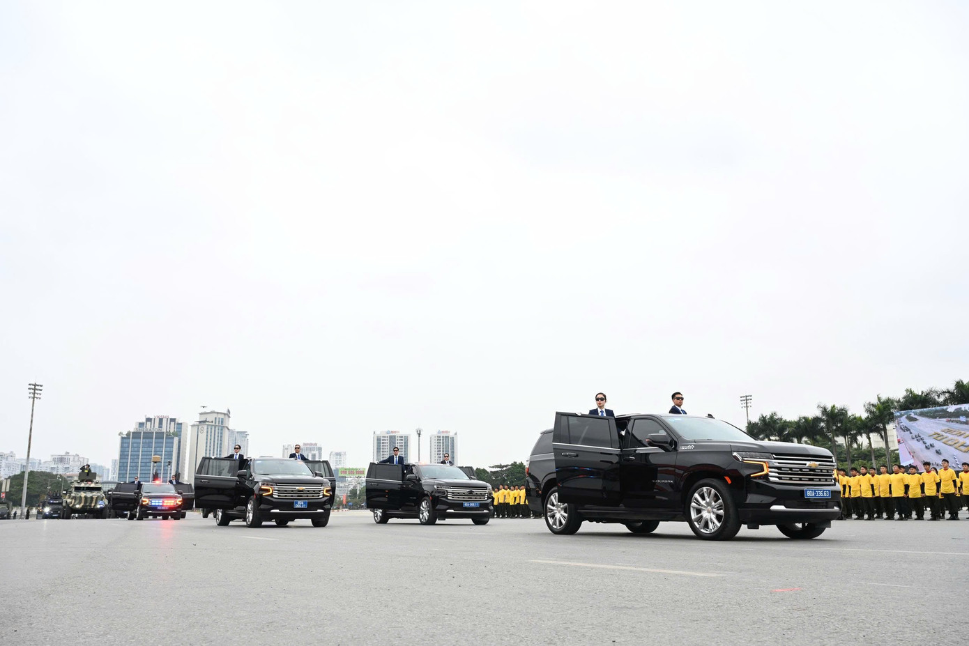 Tham gia đội hình sơ duyệt còn có Khối phương tiện nghiệp vụ chuyên dùng phục vụ công tác bảo vệ lãnh đạo Đảng, Nhà nước và các đoàn khách quốc tế thuộc diện cảnh vệ. Đây là các phương tiện cấu hình cao, trang bị hiện đại, tích hợp nhiều tính năng vượt trội, đáp ứng yêu cầu tác chiến và bảo vệ trong điều kiện phức tạp. Các phương tiện được trang bị các tính năng hiện đại. Ảnh: Đ.H.