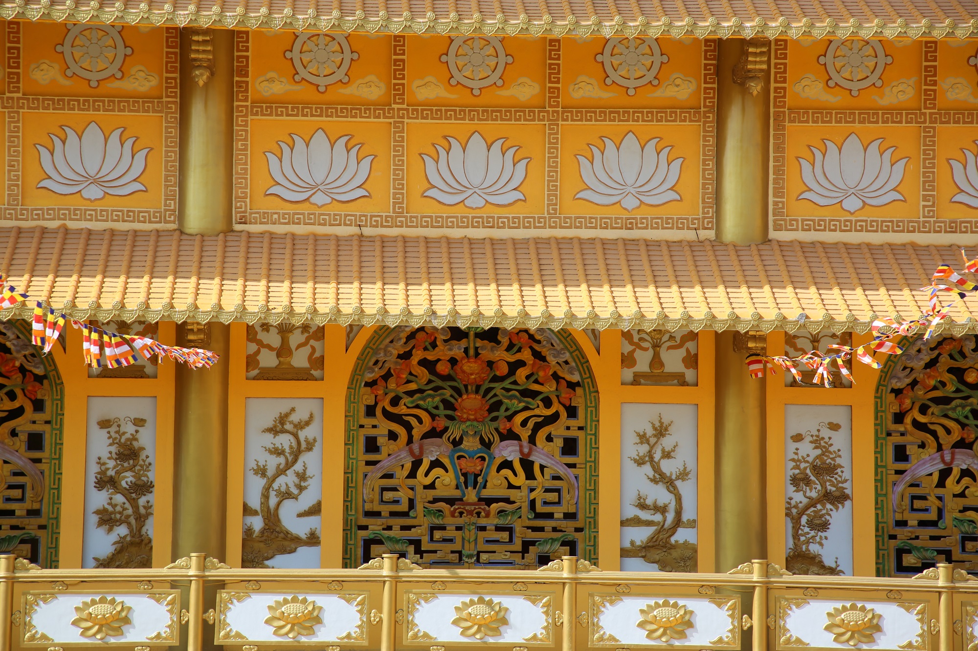Công trình sử dụng gam màu vàng chủ đạo, tạo nên diện mạo nổi bật giữa không gian chùa.
