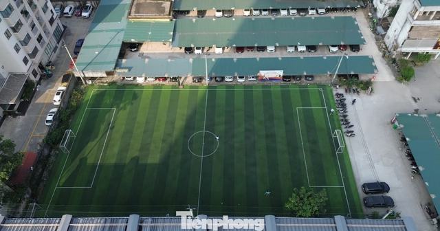 Bên cạnh sân pickleball là sân bóng đá, được xây dựng đã lâu.
