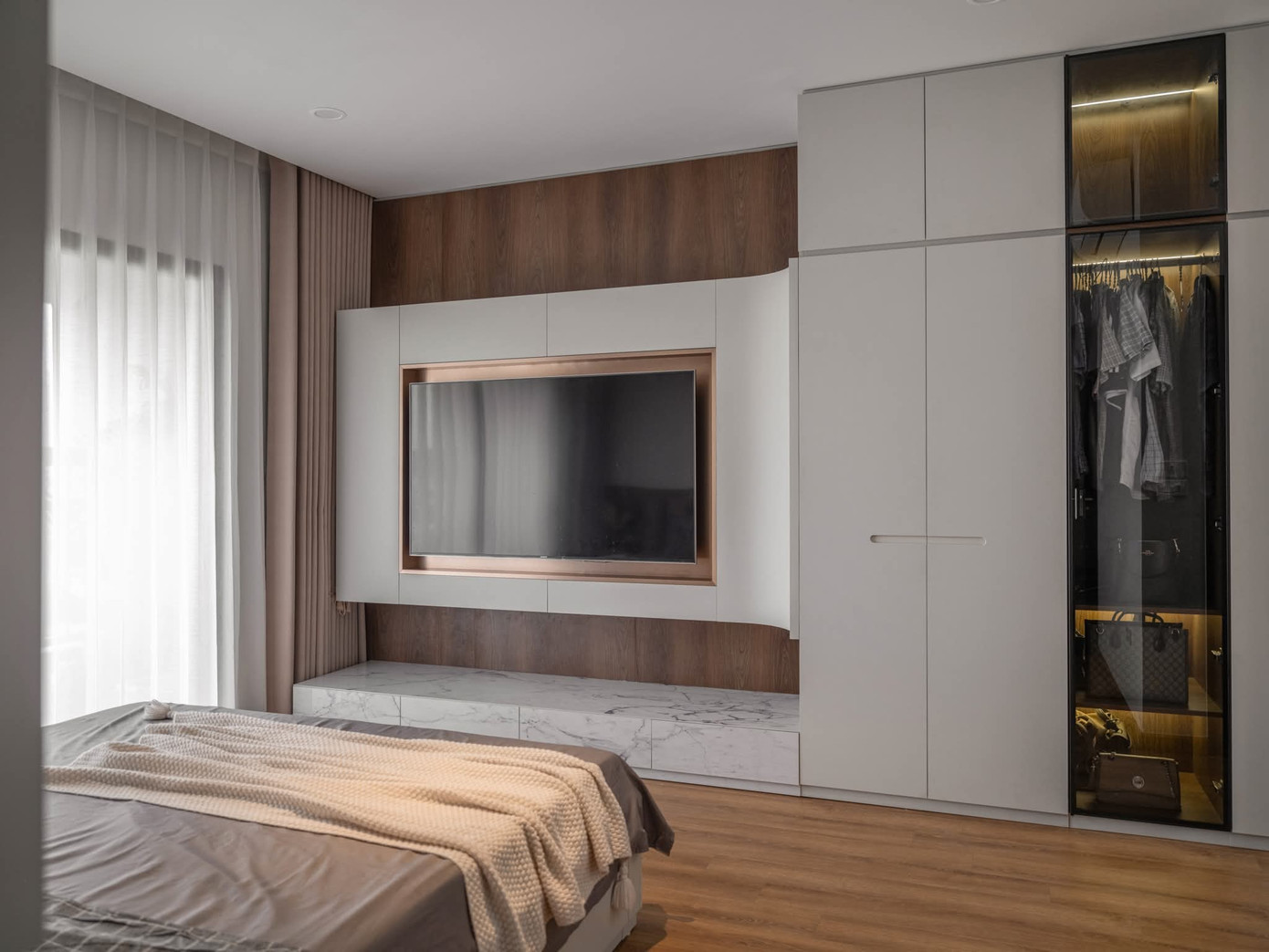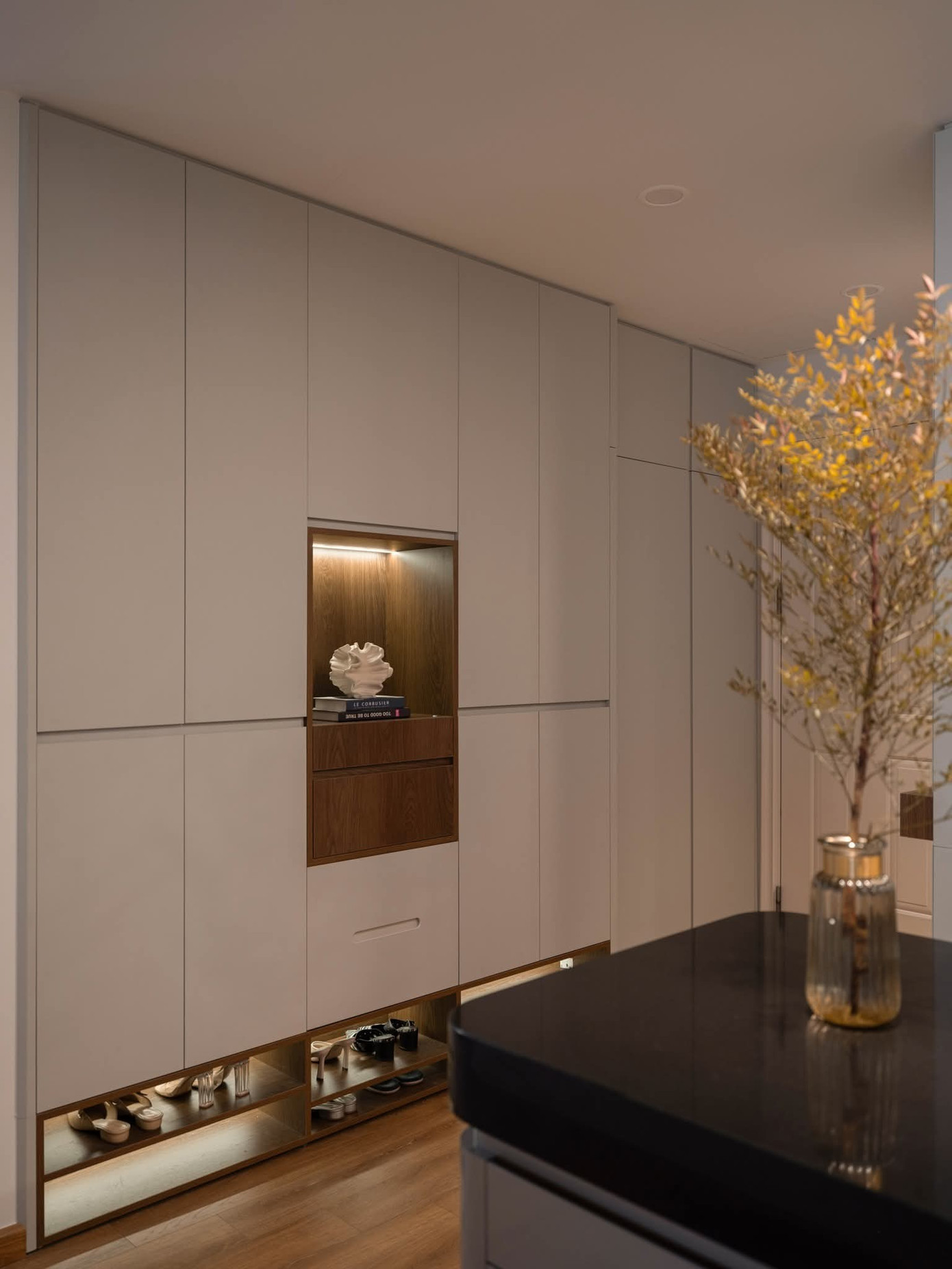 Tổng thể căn hộ là sự cân bằng giữa công năng và cảm xúc. Không cần quá nhiều chi tiết để gây ấn tượng, chỉ cần từng không gian đều đúng với nhịp sống hiện tại của gia chủ: đã đủ trải nghiệm để biết mình cần gì, và đủ chín chắn để bỏ qua những điều không cần thiết.