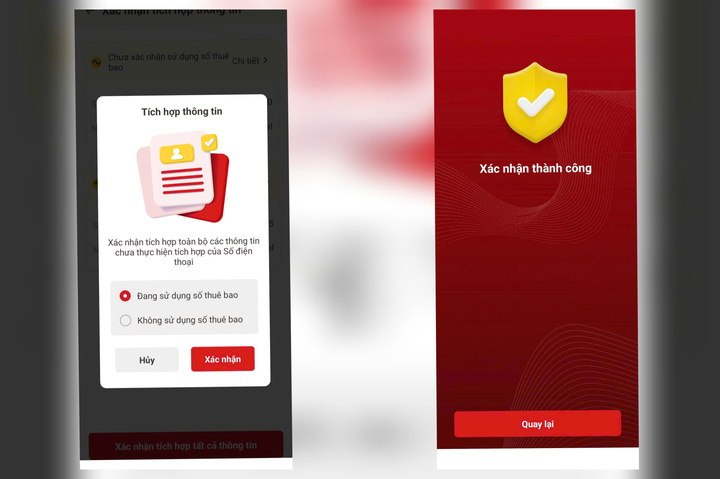 Bước 5: Yêu cầu xác nhận tích hợp thông tin Đang sử dụng thuê bao hoặc Không sử dụng số thuê bao .