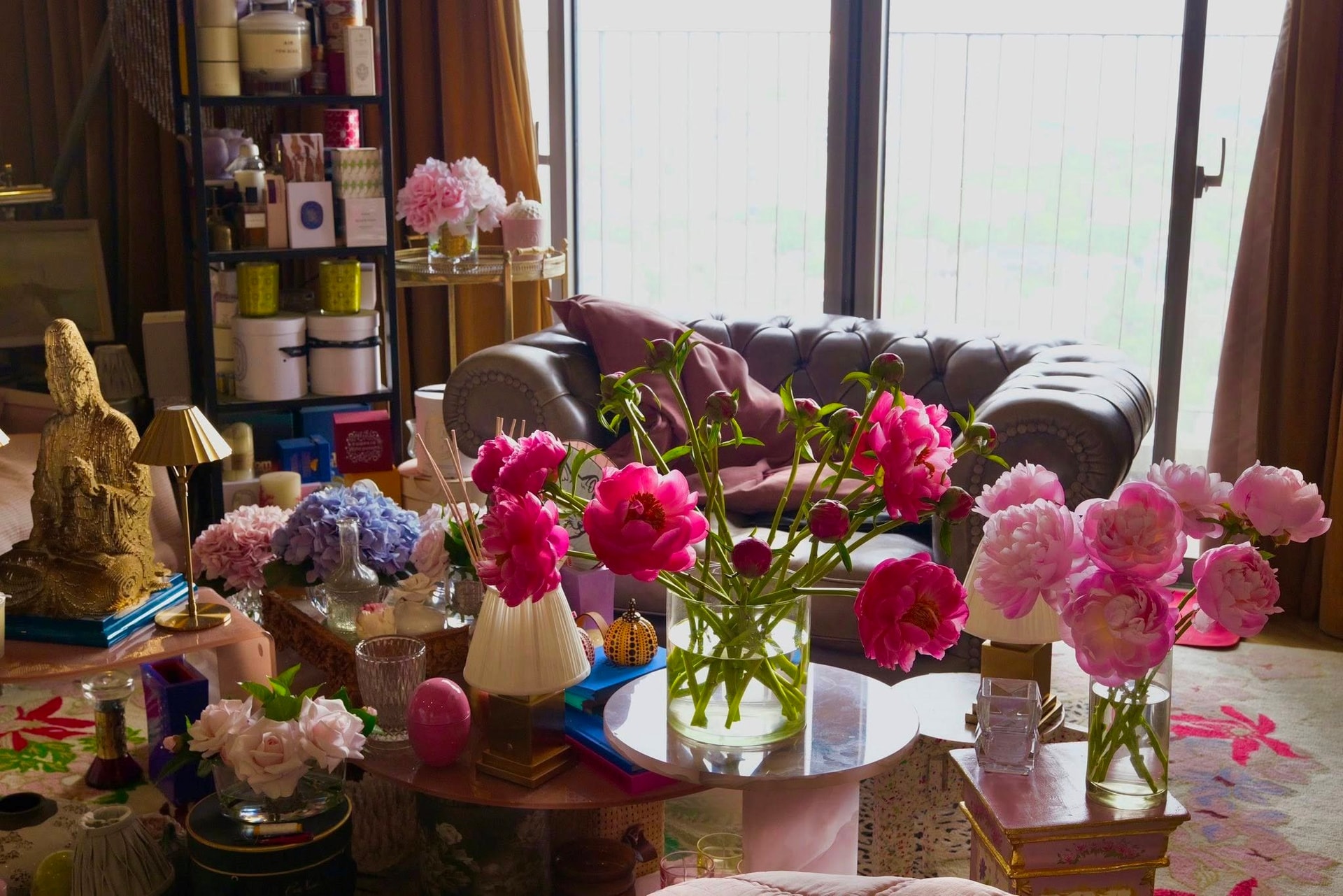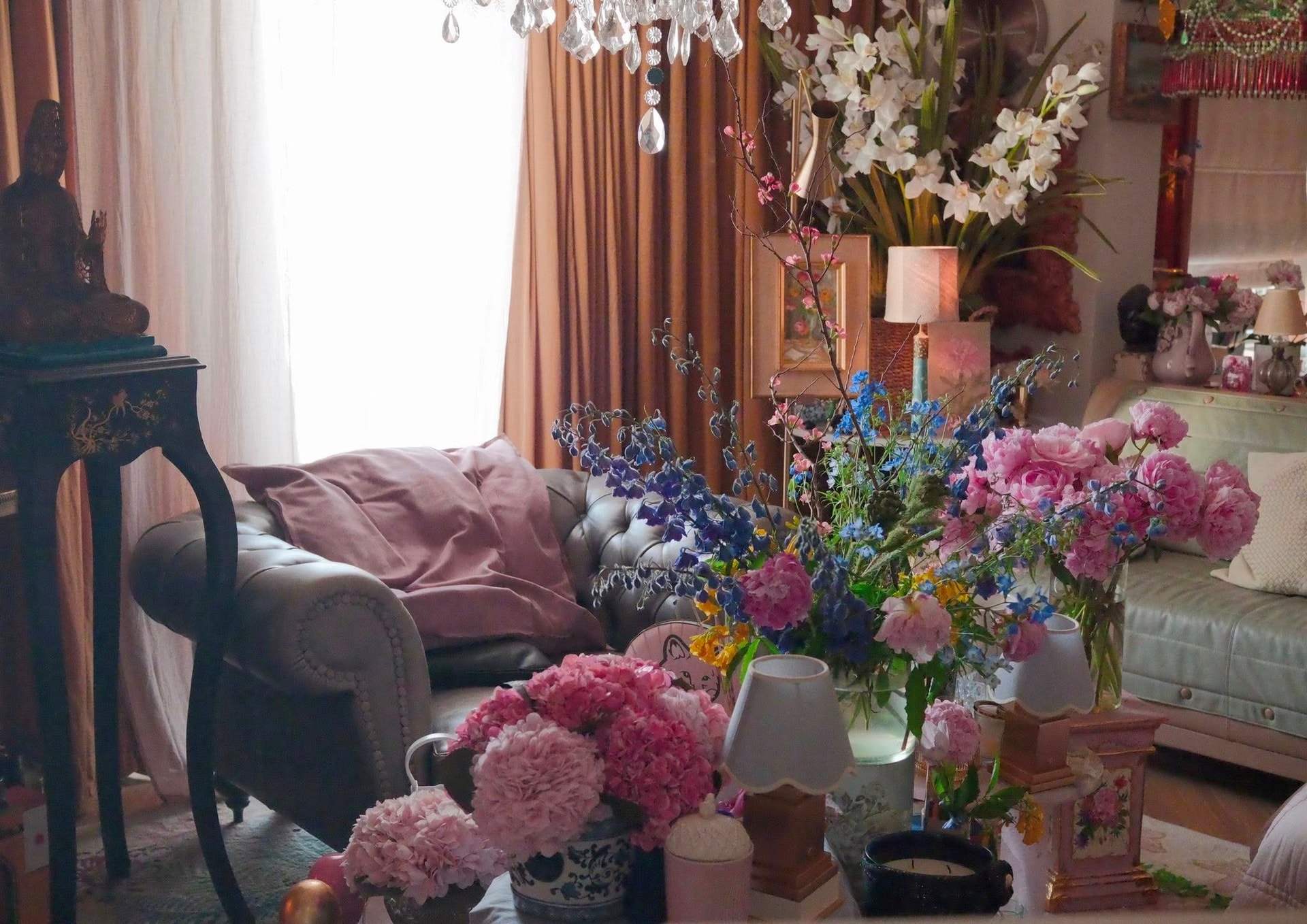 Hoa tươi cũng là một trong những yếu tố không thể thiếu trong không gian sống của Lý Quí Khánh. Nhà thiết kế nổi tiếng là người yêu hoa và thường xuyên tự tay cắm hoa để trang trí nhà cửa. Phong cách cắm hoa của anh khá phóng khoáng, mang đậm cảm hứng nghệ sĩ. Thay vì tuân theo những quy tắc cứng nhắc, anh lựa chọn hoa và phối màu theo cảm xúc, giống như đang vẽ một bức tranh sống động giữa không gian sống.