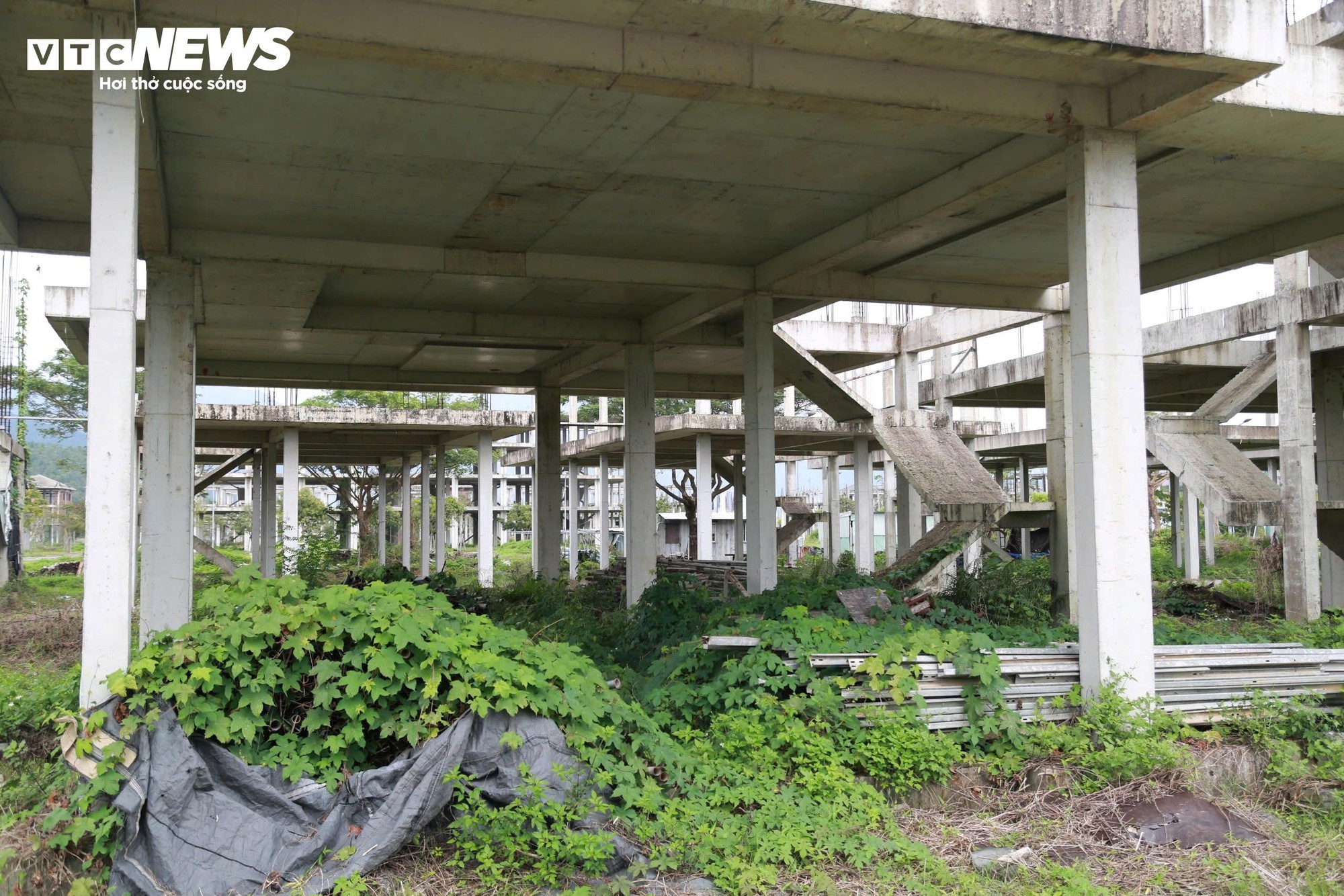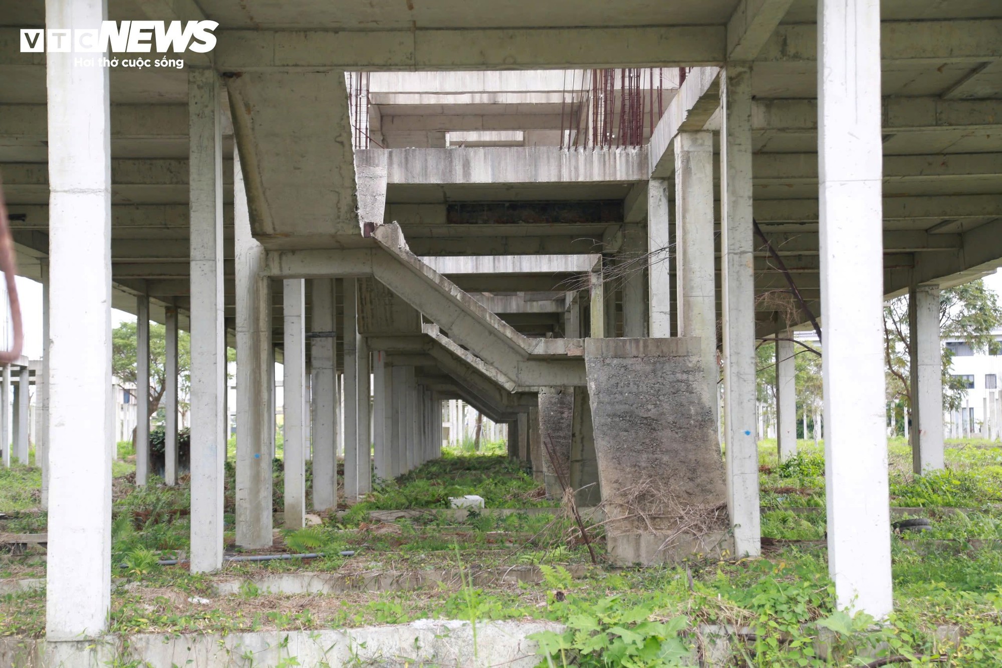 Cỏ dại mọc um tùm bên trong các công trình trông rất nhếch nhác.