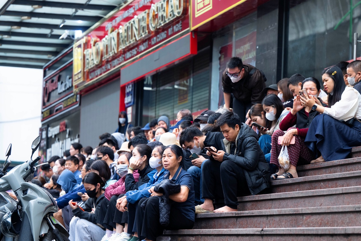 Chia sẻ với chúng tôi, hai vợ chồng lớn tuổi sống tại đường Phạm Văn Đồng (Hà Nội) cho biết đã đèo nhau ra cửa hàng từ 6 giờ sáng, nhưng khi đến nơi, khu vực bên trong đã chật kín người, thậm chí cầu thang cũng không còn chỗ trống.