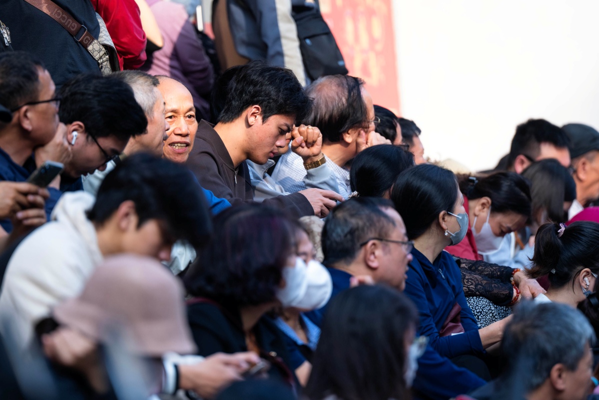 Khu vực bên ngoài các bậc thang dường như không còn chỗ trống, ai cũng cố gắng chen chân xếp hàng để có thể mua được vàng sớm