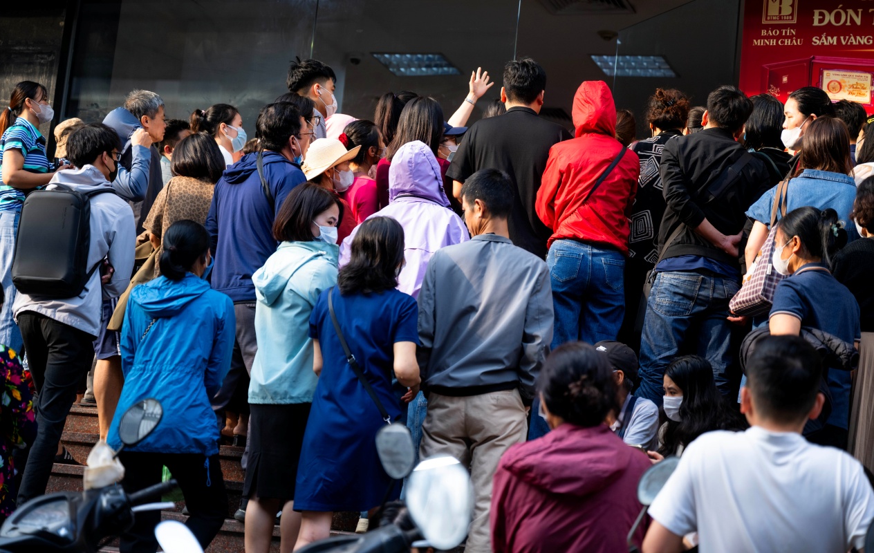 Dòng người đông đúc từ ngoài vào trong, nhiều người chờ hàng giờ để mua vàng tích trữ, lo việc cưới xin.