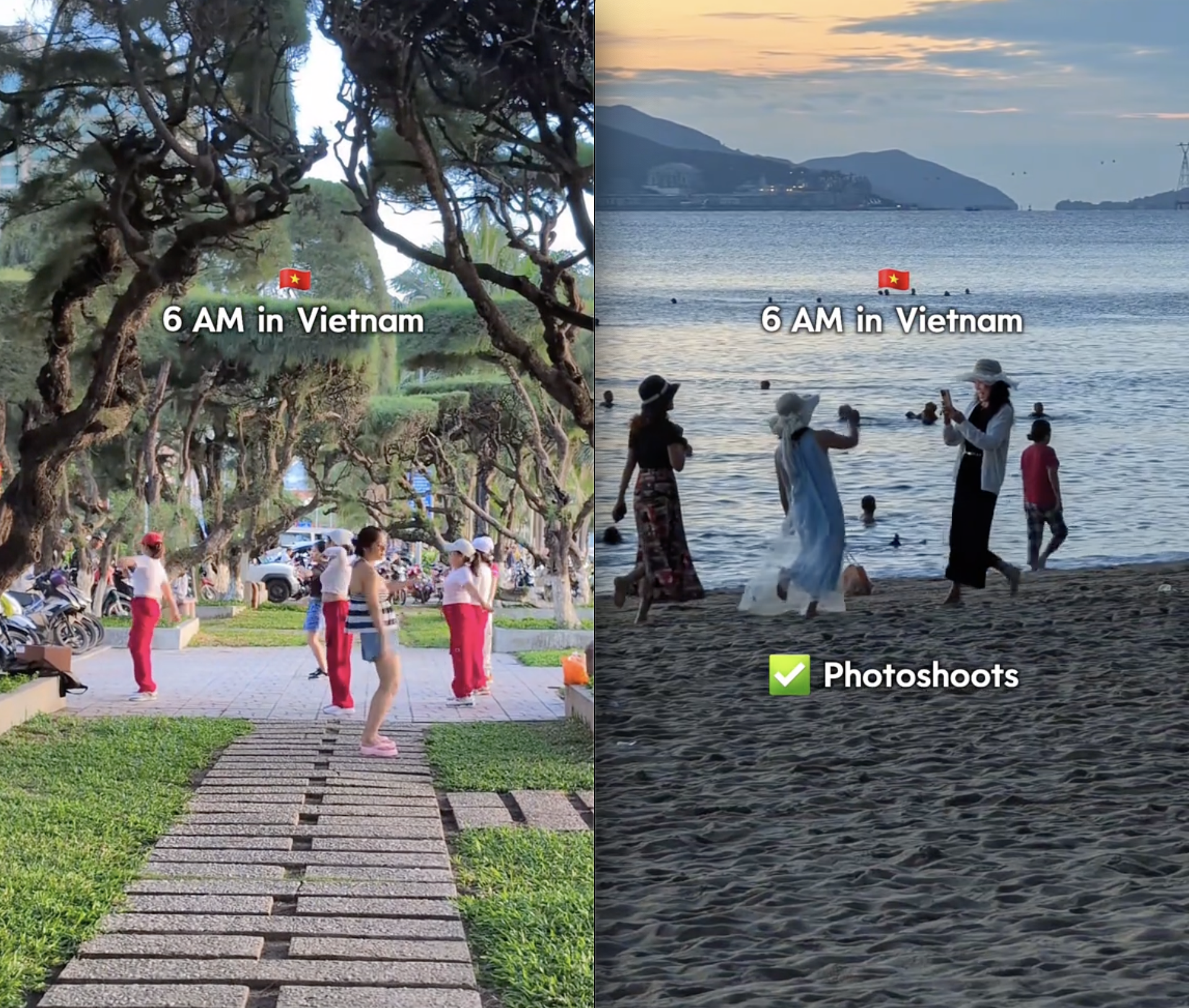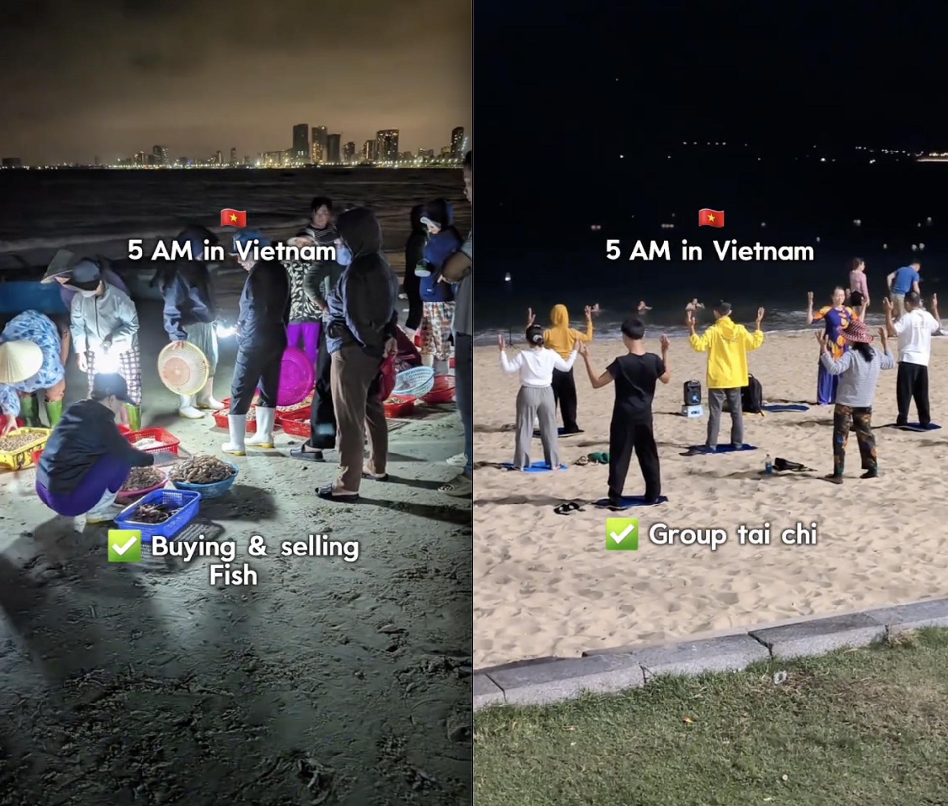 Không chỉ có bãi biển đẹp hay đồ ăn ngon, mà chính khung cảnh 5h sáng đầy sức sống ở Việt Nam cũng là điều khiến 2 vị khách Tây ấn tượng đặc biệt.