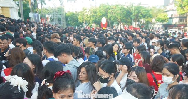 Càng sát giờ phát vé, lượng người đổ về Nhà hát Lớn Hà Nội ngày càng đông. Người dân chen chân dưới nắng sớm Thủ đô để nhận vé miễn phí concert Việt Nam trong tôi. Theo đó, nhiều người xếp hàng từ tận nửa đêm.
