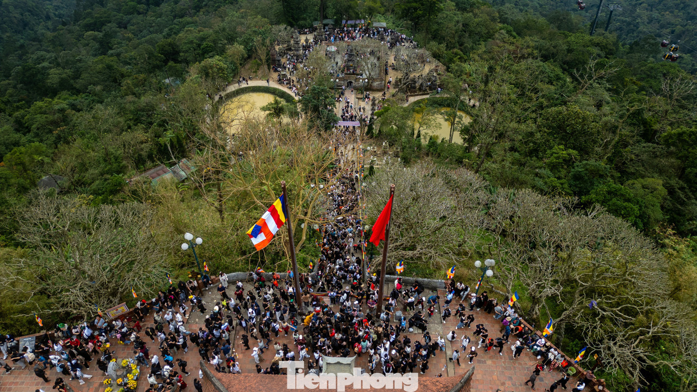 Đỉnh thiêng Yên Tử trong buổi sáng sớm của hai ngày nghỉ Tết Nguyên đán Nhâm Ngọ chật kín người dân lễ bái.
