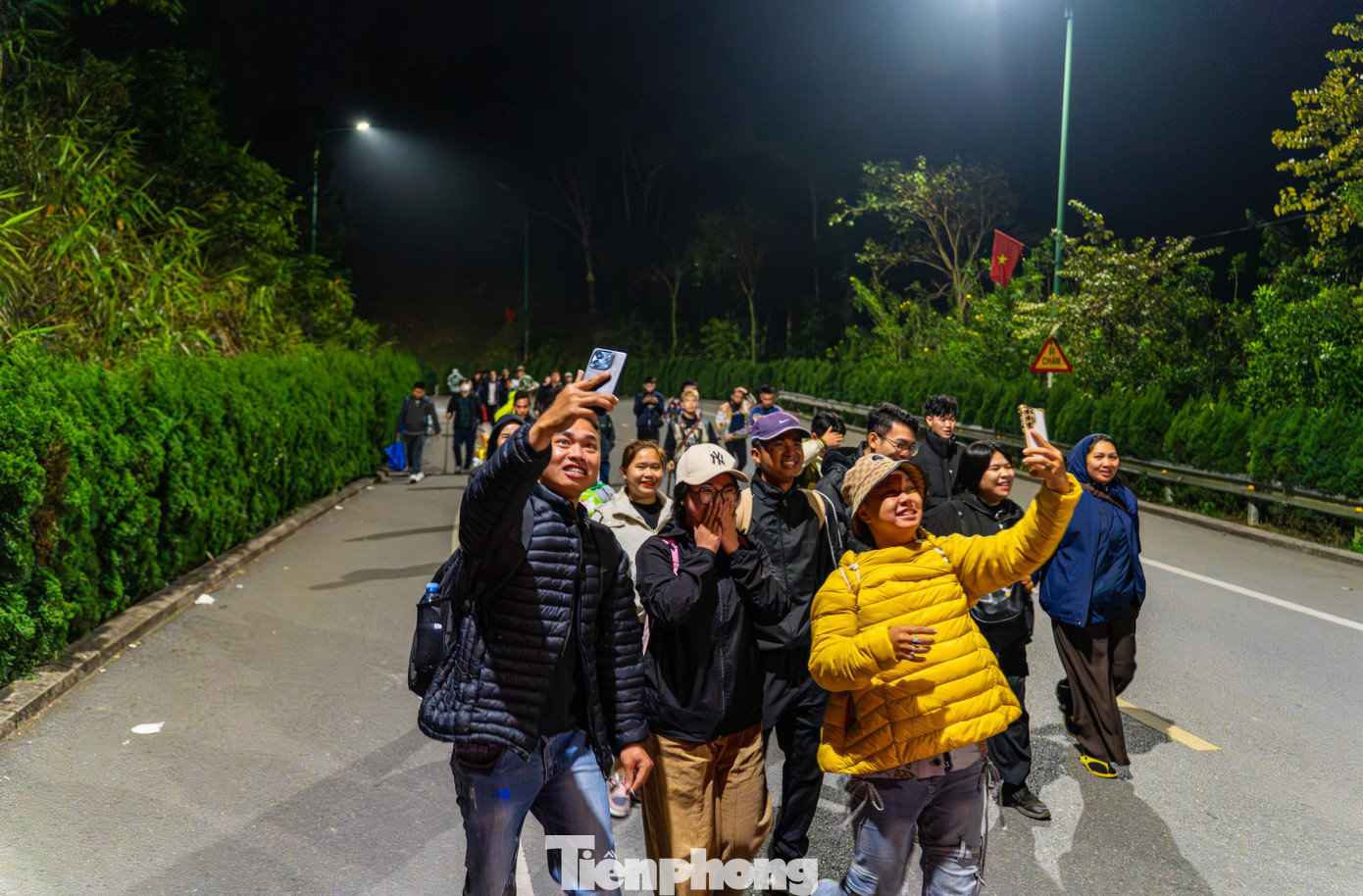 Tuyến đường leo bộ từ chùa Giải Oan lên chùa Hoa Yên đông các bạn trẻ hành hương leo bộ, trên đường đi du khách mang theo đèn pin để soi sáng từng bước leo bộ về với kinh đô Phật giáo Việt Nam. Trong khi đó 4 tuyến cáp treo chia làm 2 chặng lên đỉnh thiêng Yên Tử cũng hoạt động hết công suất từ sáng đến đêm để đưa hàng nghìn du khách lên núi hành hương trong buổi sớm.