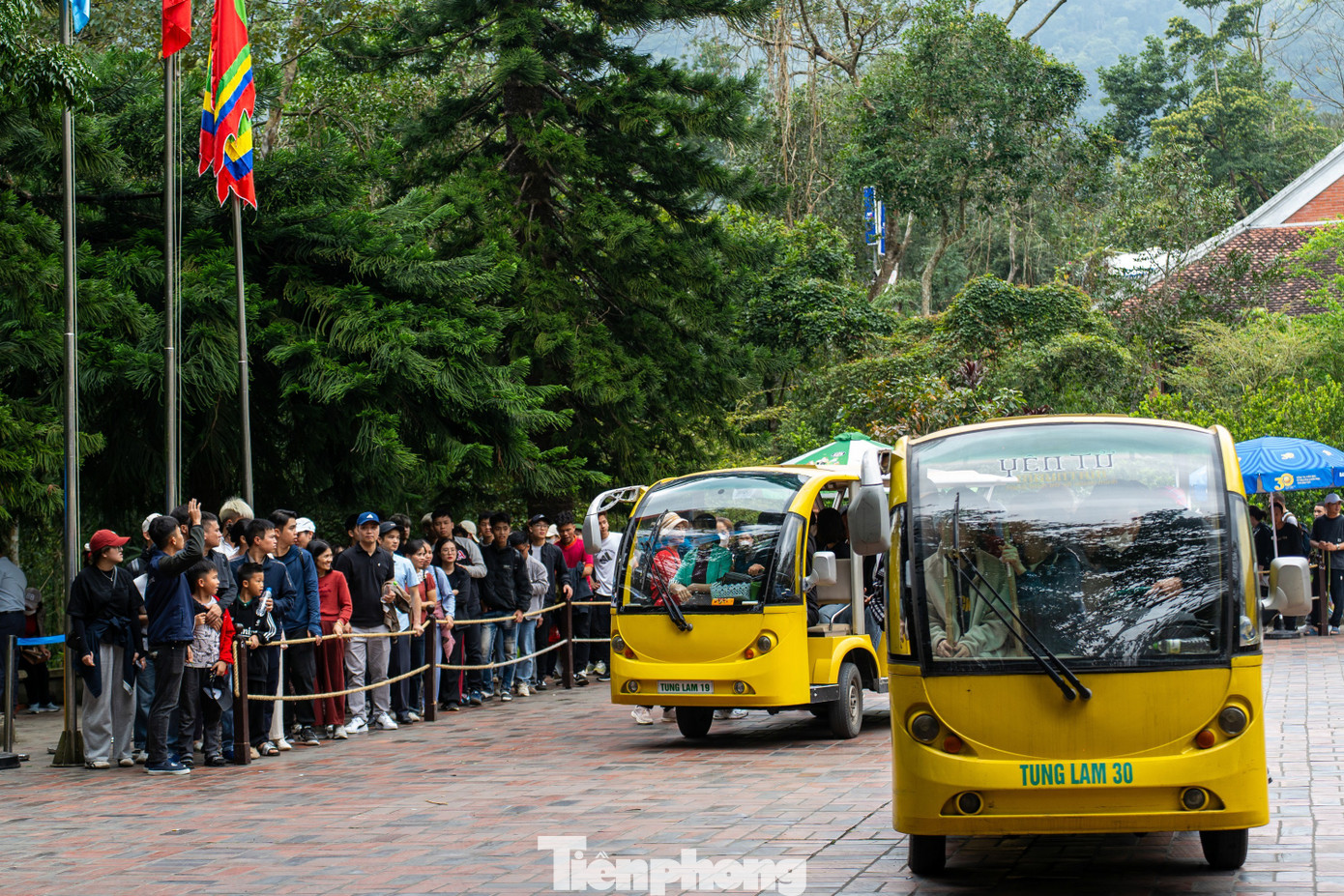 Cùng với đó các dịch vụ xe điện đưa đón du khách cũng chứng kiến cảnh dòng người xếp hàng dài chờ đợi. Để phục vụ mùa lễ hội Xuân, Công ty Cổ phần Phát triển Tùng Lâm cũng đã tăng cường bố trí hàng trăm xe điện, luân phiên liên tục phục vụ nhu cầu di chuyển của người dân và du khách thập phương giữa các điểm, chặng trong quần thể di tích - danh thắng.