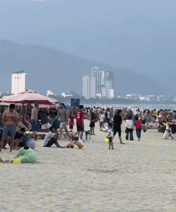 Trong những ngày gần đây, hàng loạt đoạn clip và hình ảnh ghi lại sự nhộn nhịp tại bãi biển Đà Nẵng được chính các du khách thay nhau chia sẻ. Thay vì không gian thoáng đãng, có phần vắng vẻ thường thấy của giai đoạn giao mùa, bãi biển lại xuất hiện một cảnh tượng người đông như kiến. Kéo dài từ bờ cát trắng phau cho đến tít dưới mép nước đều ken đặc dòng người đổ về giải nhiệt, tắm biển và thong thả đi dạo.